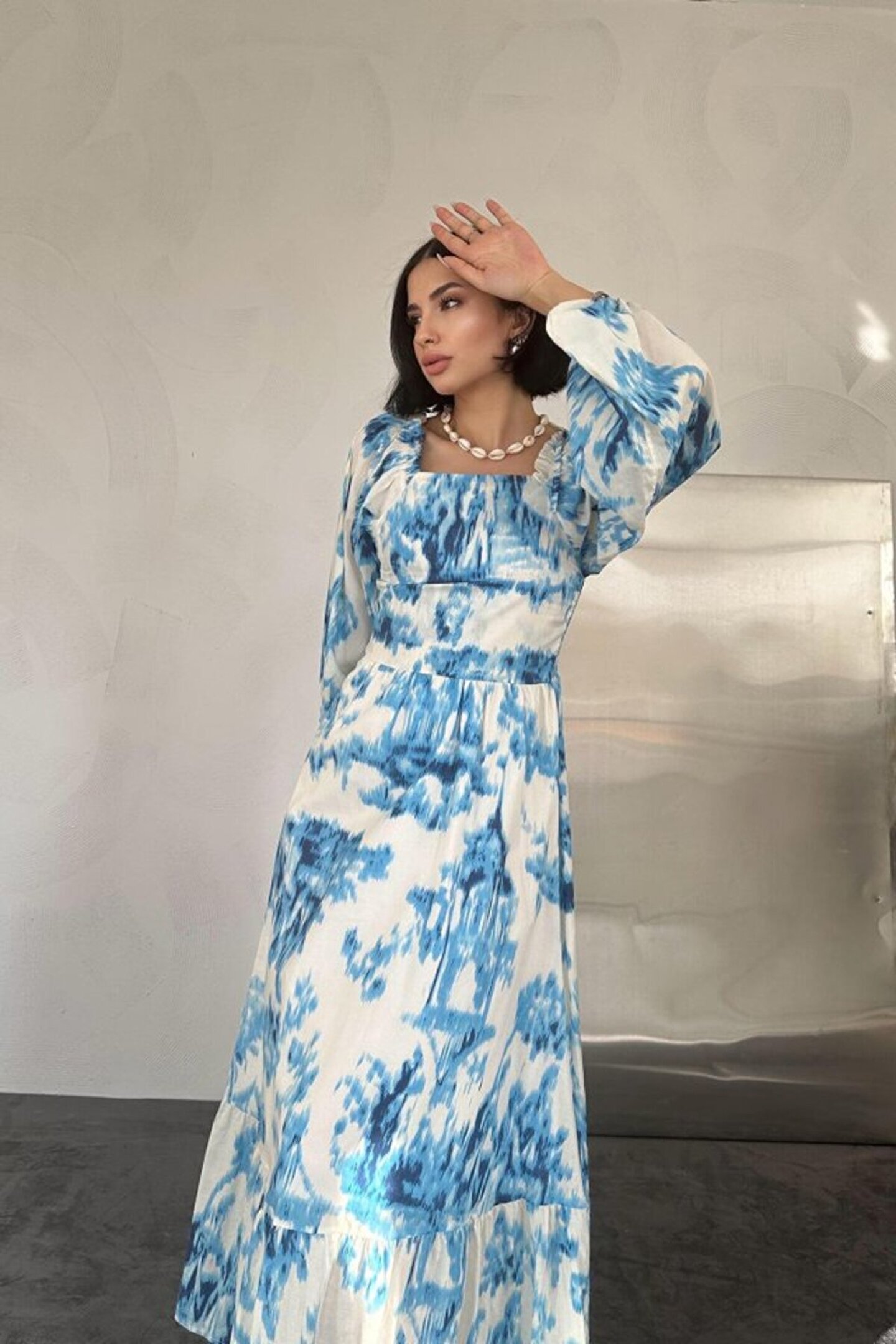 BEFAON munn collection Mavi Arkası Gipeli Uzun Elbise