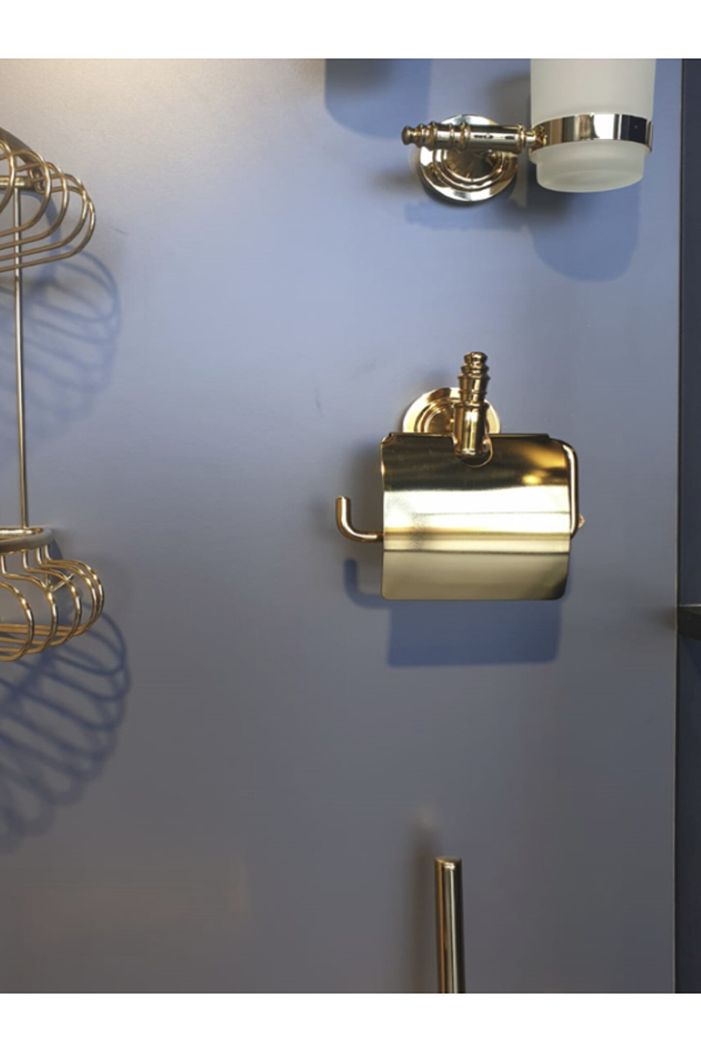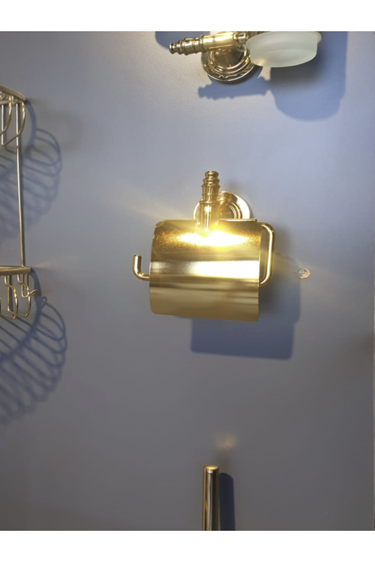 - Krom malzemesi sayesinde uzun ömürlü ve dayanıklı kullanım sunar; - Altın kaplama detayları ile modern ve şık bir görünüm kazandırır; - Kolay temizlenebilir yüzeyi, hijyenik bir ortam sağlar; - Pratik tasarımı, tuvalet kağıtlığını kolayca yerleştirmenize olanak tanır;
