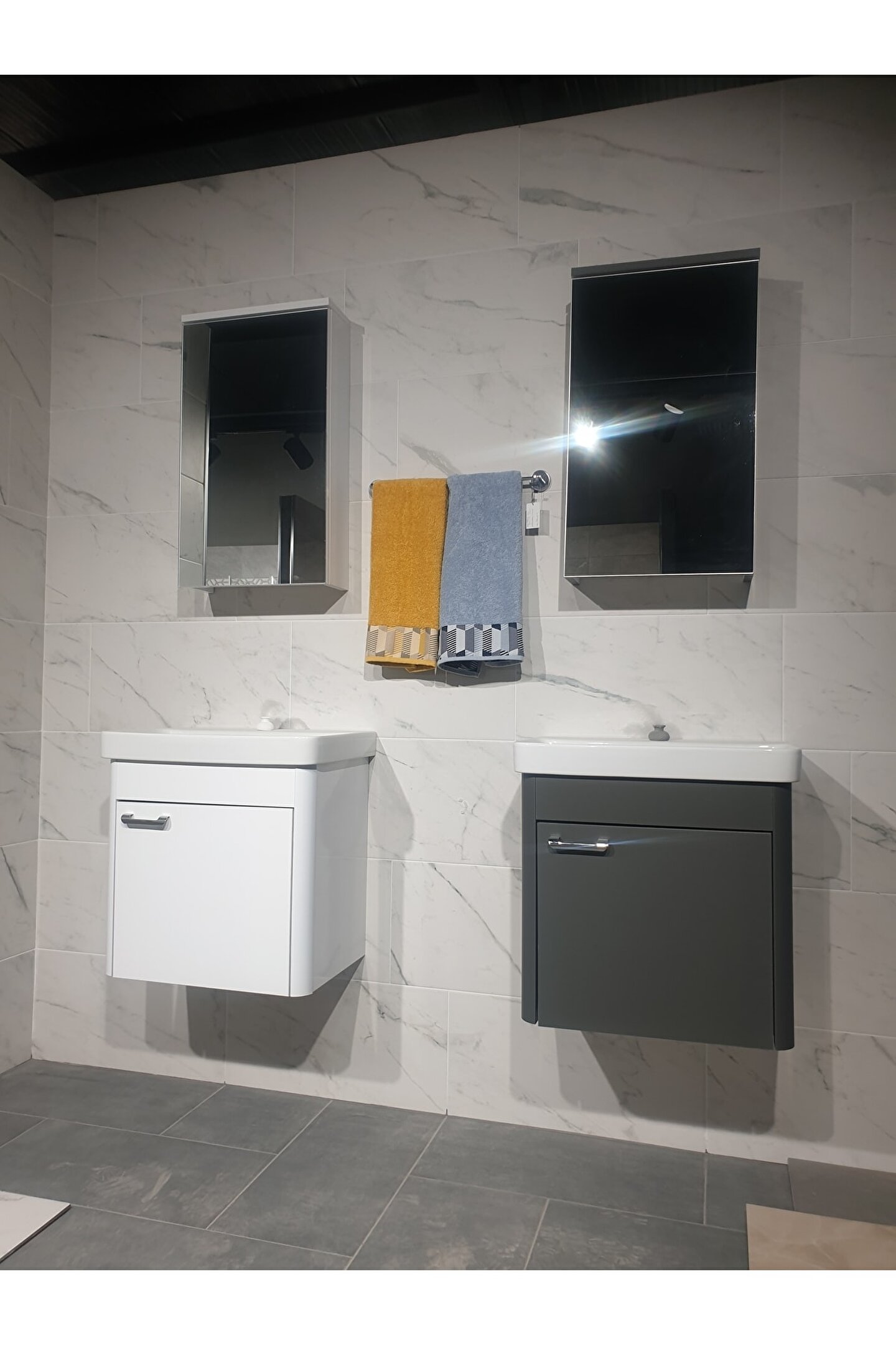 Aynalı tasarımı sayesinde hem kullanışlı hem de şık bir banyo deneyimi sunar; Set halinde gelen bu banyo dolap takımı, banyonuzda ihtiyacınız olan tüm parçaları tek bir pakette toplar; 55 cm genişliğindeki kompakt boyutu, dar alanlar için idealdir ve banyonuzda yerden tasarruf etmenizi sağlar;