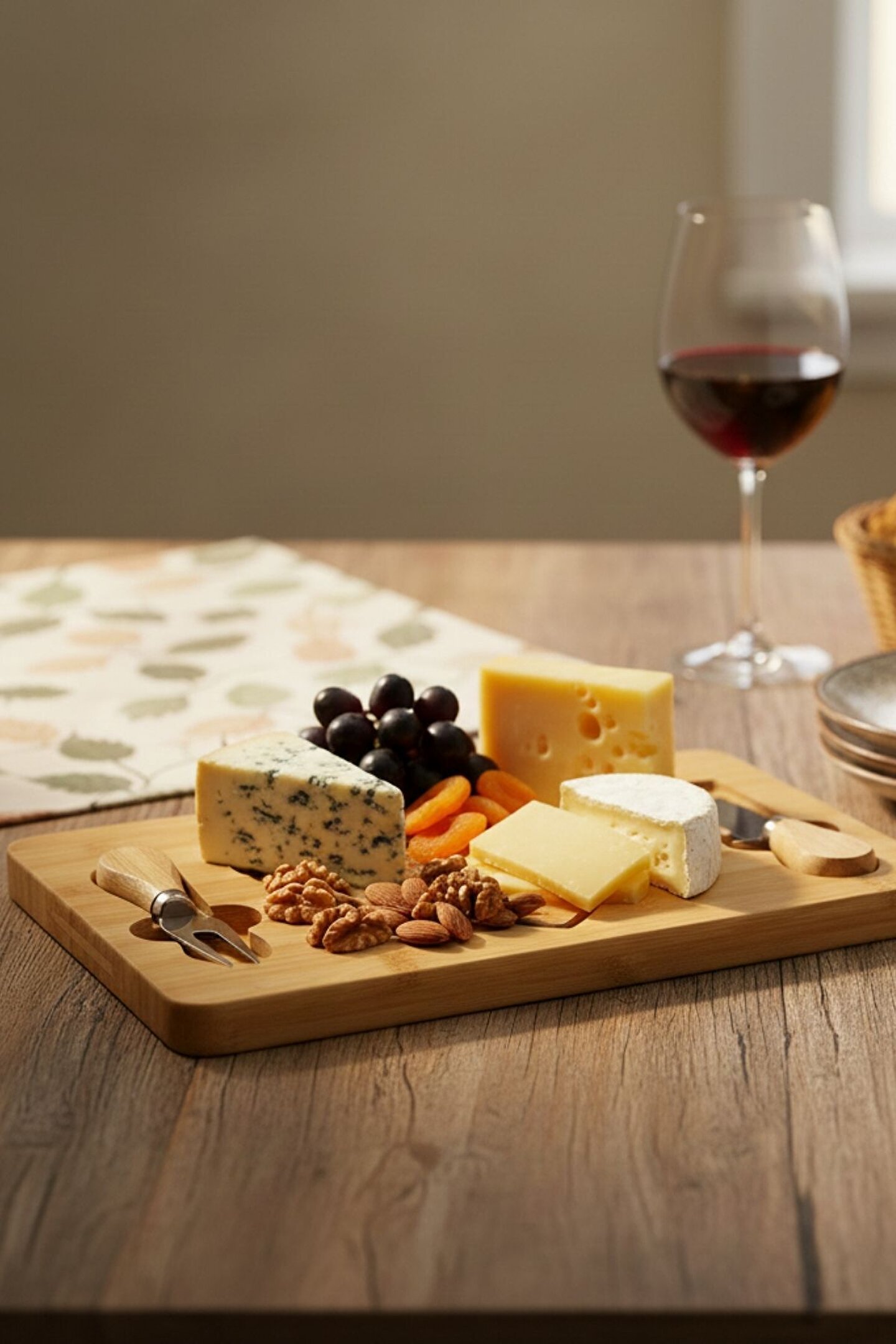 Ergonomik ve Düzenli: Peynir bıçakları için ayrılmış özel oyuklar sayesinde servis araçlarınız her zaman elinizin altında ve düzenli durur.