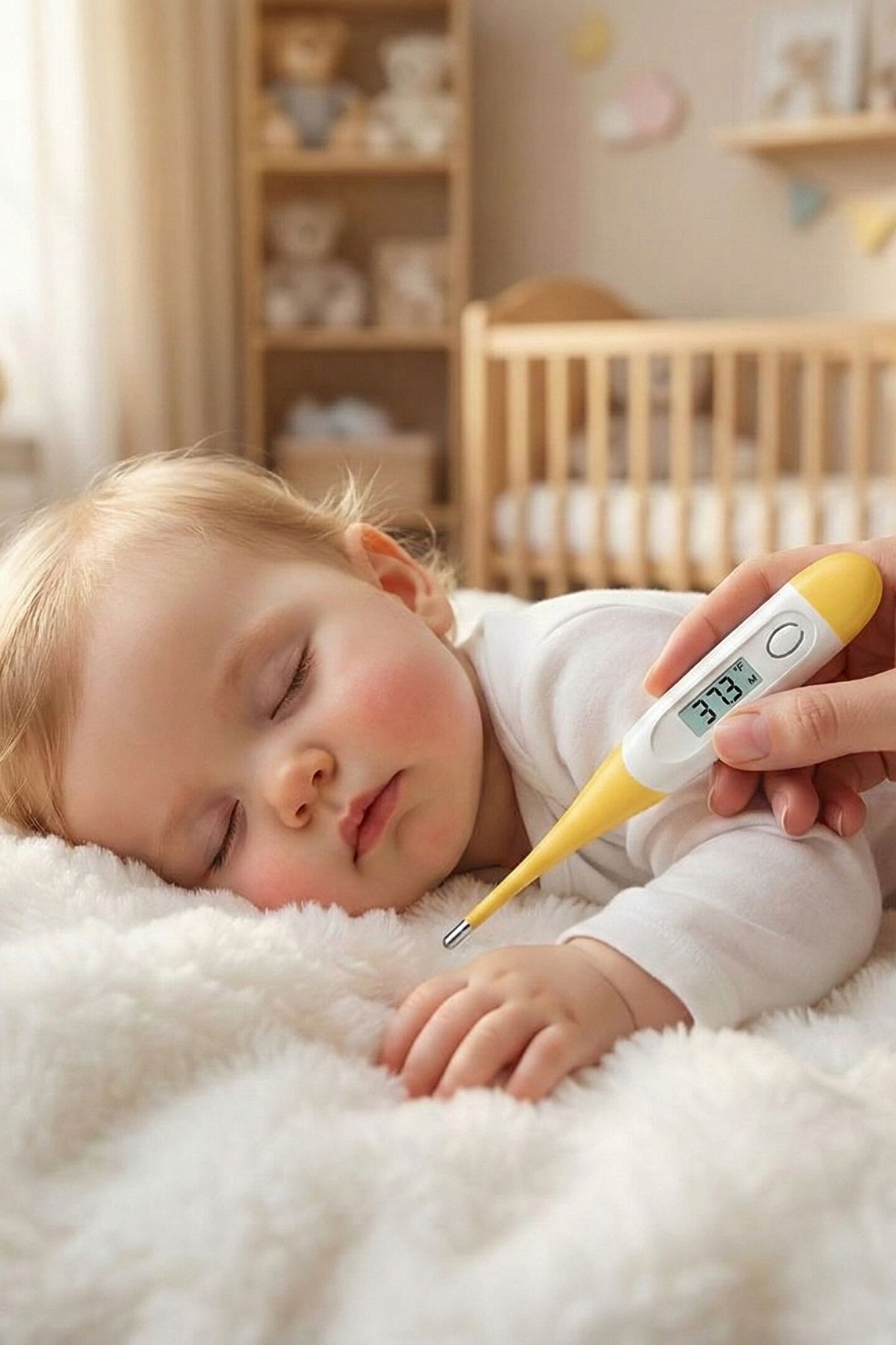Bebeğinizin Sağlığı İçin Güvenilir Takip: Hassas Dijital Çubuk Ateş Ölçer Ebeveynler için en büyük öncelik, bebeklerinin sağlığı ve huzurudur.; Özellikle hastalık dönemlerinde doğru ve hızlı ateş ölçümü hayati önem taşır.; Sarı ve beyaz renkli bu dijital termometre, bebeğinizin ateşini en hassas şekilde takip etmeniz için tasarlanmıştır.; Görsellerde de görüldüğü gibi, bebeğiniz mışıl mışıl uyurken bile onu rahatsız etmeden, konforlu bir şekilde koltuk altı ateş ölçümü yapabilirsiniz.; Neden Bu Dijital Ateş Ölçeri Tercih Etmelisiniz? Hassas ve Doğru Sonuçlar: ±0,2°C gibi yüksek bir hassasiyet oranıyla çalışır.; 35-42°C aralığındaki vücut sıcaklığını hızlı ve doğru bir şekilde ölçerek size güvenilir sonuçlar sunar.; Bebekler İçin Tamamen Güvenli: Eski tip termometrelerin aksine cıva içermez.; Kırılmaya dayanıklı özel uç yapısı sayesinde, hareketli bebeklerde ve çocuklarda bile güvenle kullanılabilir.; Kullanıcı Dostu Dijital Ekran: Kolay okunabilir geniş dijital ekranı (20x7mm) sayesinde, ölçüm sonucunu loş ışıkta bile net bir şekilde görebilirsiniz.; Akıllı Özellikler: Ölçüm tamamlandığında sesli alarm ile sizi uyarır.; Hafıza fonksiyonu sayesinde bir önceki ölçümü kaydederek ateş takibini kolaylaştırır.; Enerji tasarrufu için otomatik kapanma özelliğine sahiptir.; Ergonomik ve Hafif: Sadece 9.60 gr ağırlığı ve ideal boyutuyla (120mm) tutuşu kolaydır, yanınızda taşımanız için pratiktir.; Bebeğinizin ateşini güvenle ve hızla ölçmek, onun konforunu bozmadan sağlığını takip etmek için bu dijital çubuk termometre, her evin ecza dolabında olması gereken bir yardımcıdır.;