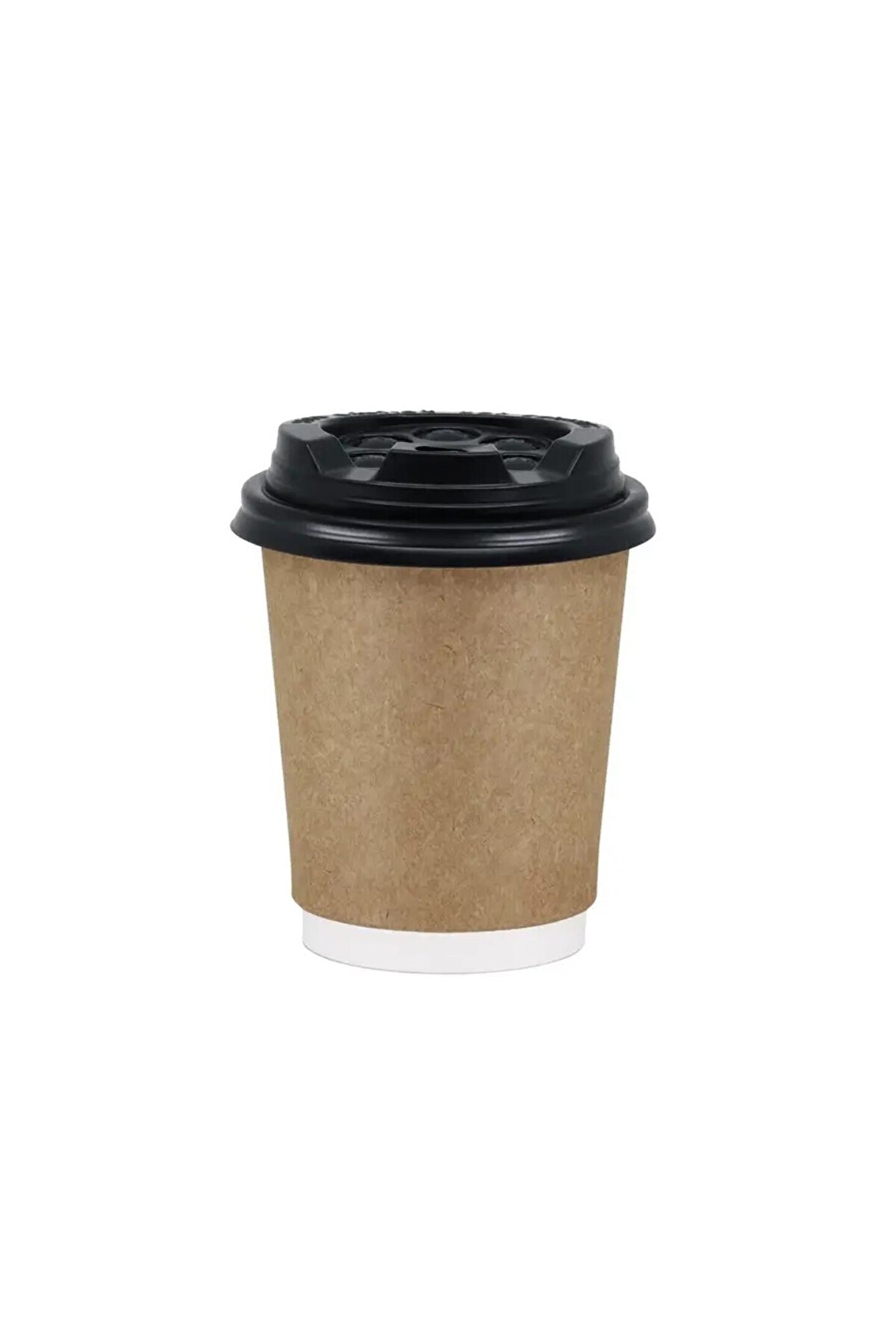 Dış tarafı kraft kartondan, iç tarafı beyaz kartondan, sıcak içeceklerde kullanıma uygun, 14oz (400ml) hacminde double wall (çift duvarlı) karton bardak.; Çift duvarlı yapısıyla içeceğin sıcaklığının hissedilmesini engeller.; Kahve, sahlep ve çay gibi sıcak içeceklerin içimi için uygundur.; Kraft malzeme bardaklarınıza kahve, çay gibi içeceklerle doğal ve şık bir görünüm sunar.; Çift duvarlı yapısı ile bardak kılıfı kullanmanıza ihtiyaç olmaz.; Siyah kapaklı olarak satışa sunulmuştur.; beyaz kapak seçeneği de mevcuttur.;