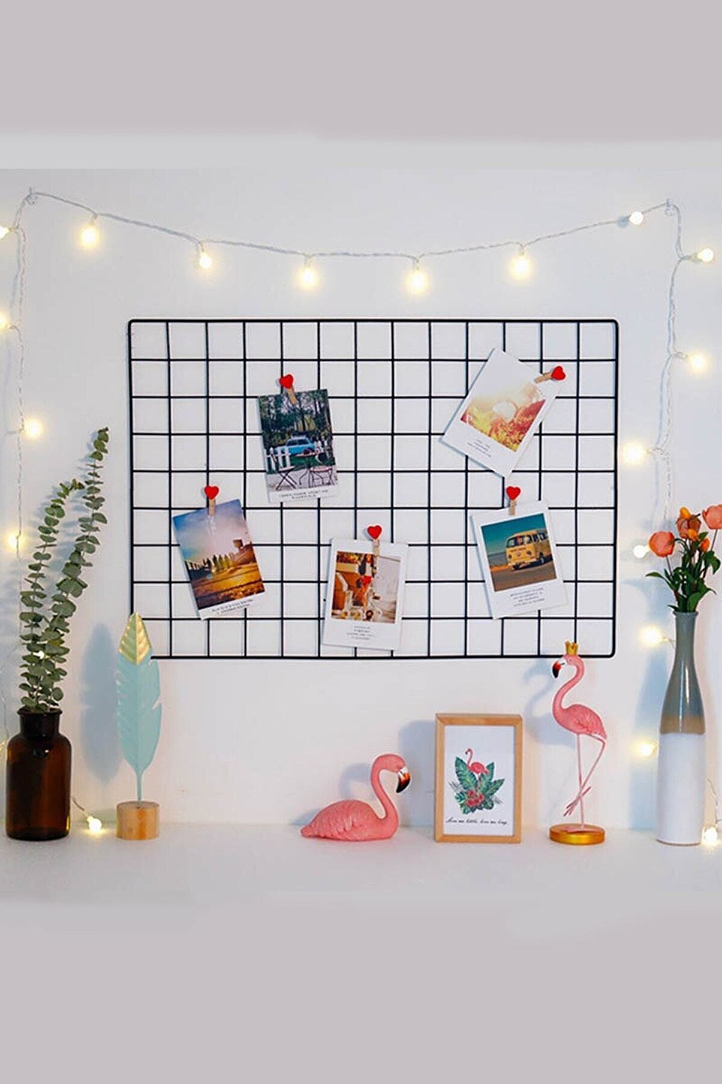 Fotograflık pano 40*60 cm ebatlarındadır; Çelik telden imal edilmiştir. Elektrostatik toz boya ile boyanmıştır. İkişer adet asma kancalı vida ve dübel paket içeriğine dahildir. Bu ürünümüzde 20 adet Mandal hediye verilmektedir.