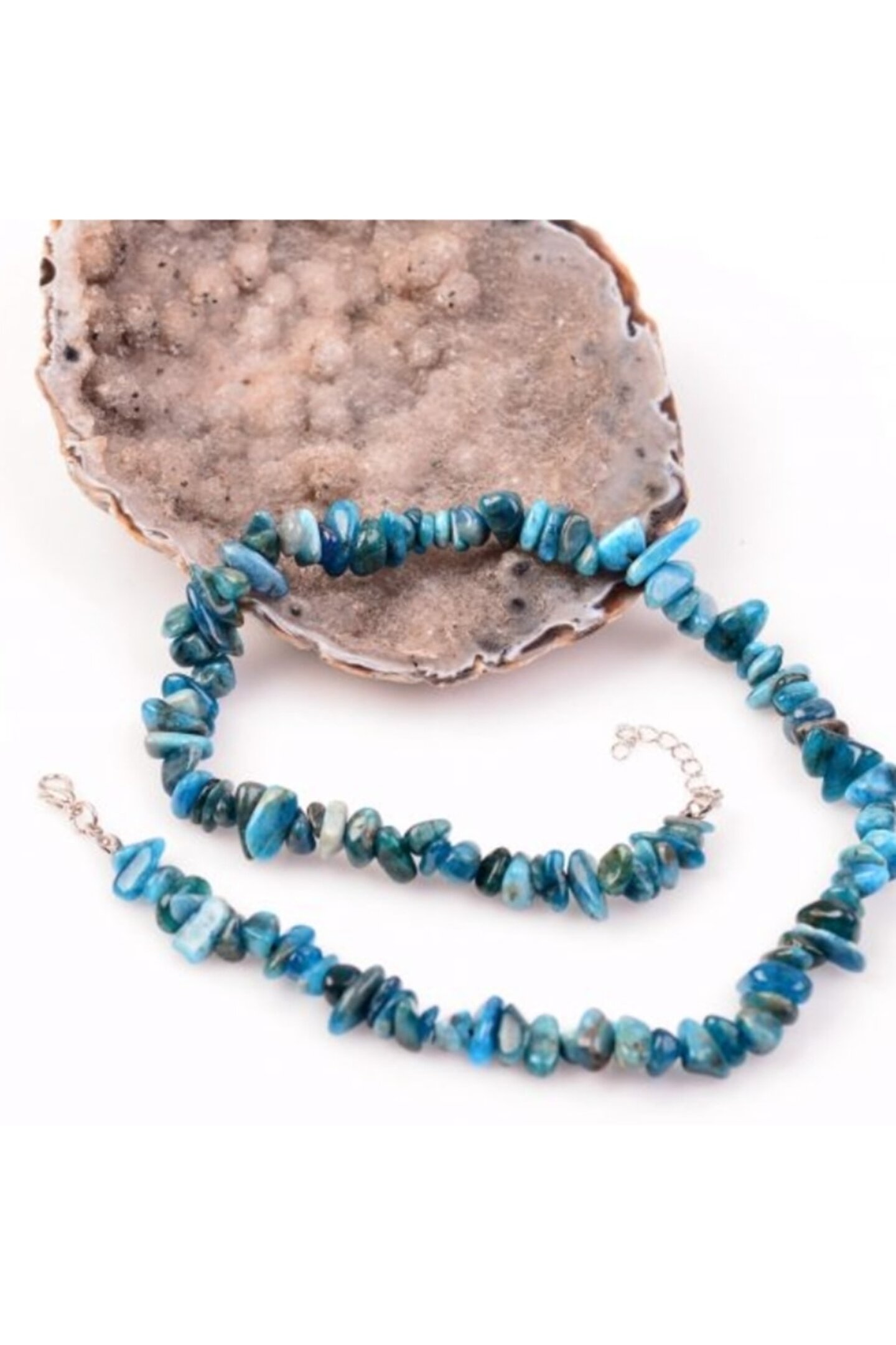 Apatit kırık doğal taş kolye, doğanın güzelliğini parmak uçlarınıza taşıyan şık ve zarif bir aksesuardır; Bu kolye, doğal taş materyaliyle hem estetik hem de dayanıklı bir kullanım sunar; Apatit taşının benzersiz dokusu ve kırık kesimiyle dikkat çekici bir görünüm kazandırır; Özel günlerinizde veya günlük kullanımınızda stilinize zarif bir dokunuş ekler; ;;