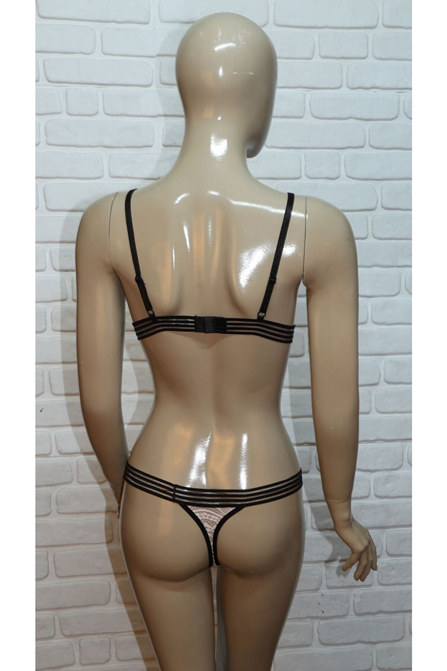 BESMOD Kadın Şerit Detaylı Lastikli Balensiz Dantel Fantazi Sütyen Külot Takım