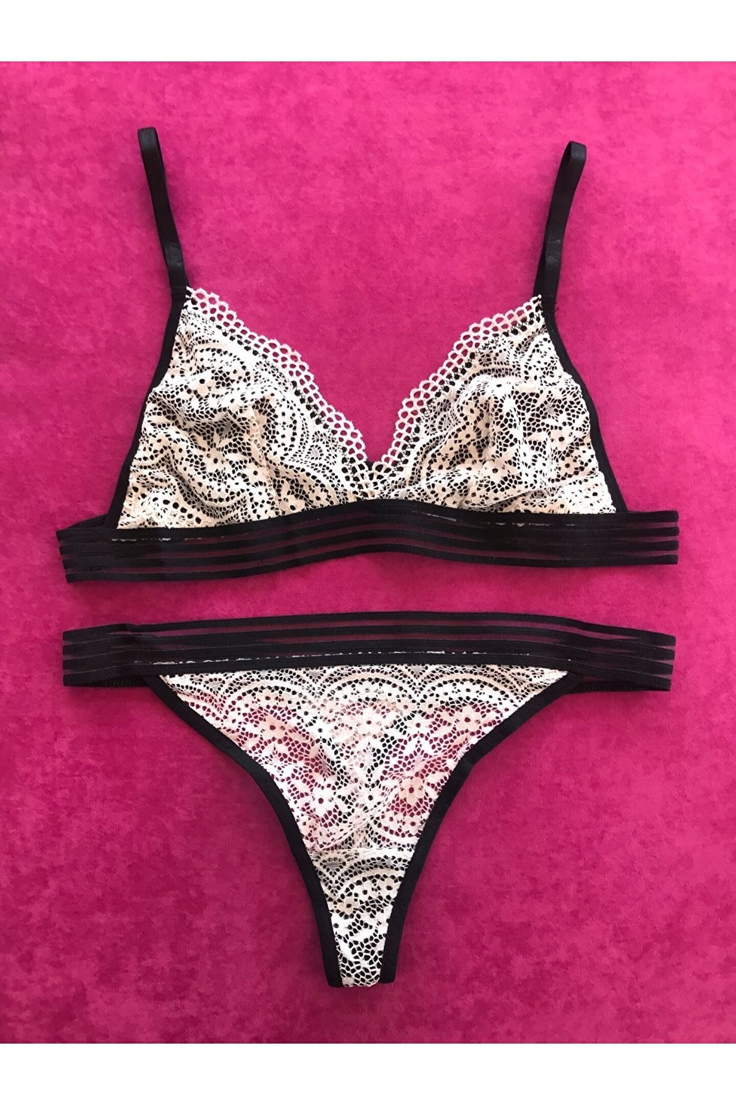 Kadın Şerit Detaylı Lastikli Balensiz Dantel Fantazi Sütyen Külot Takım