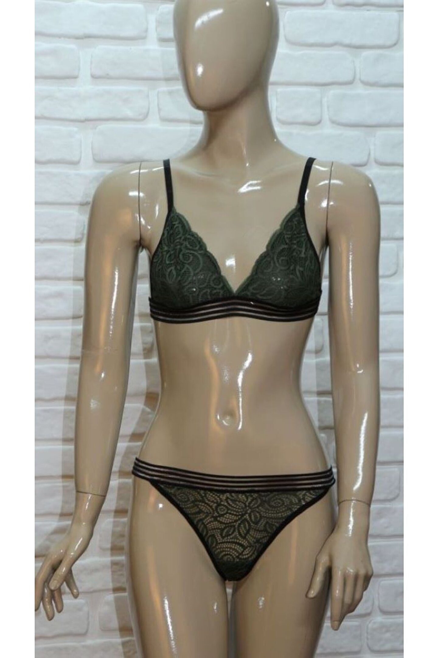 BESMOD Kadın Şerit Detaylı Lastikli Balensiz Dantel Fantazi Sütyen Külot Takım