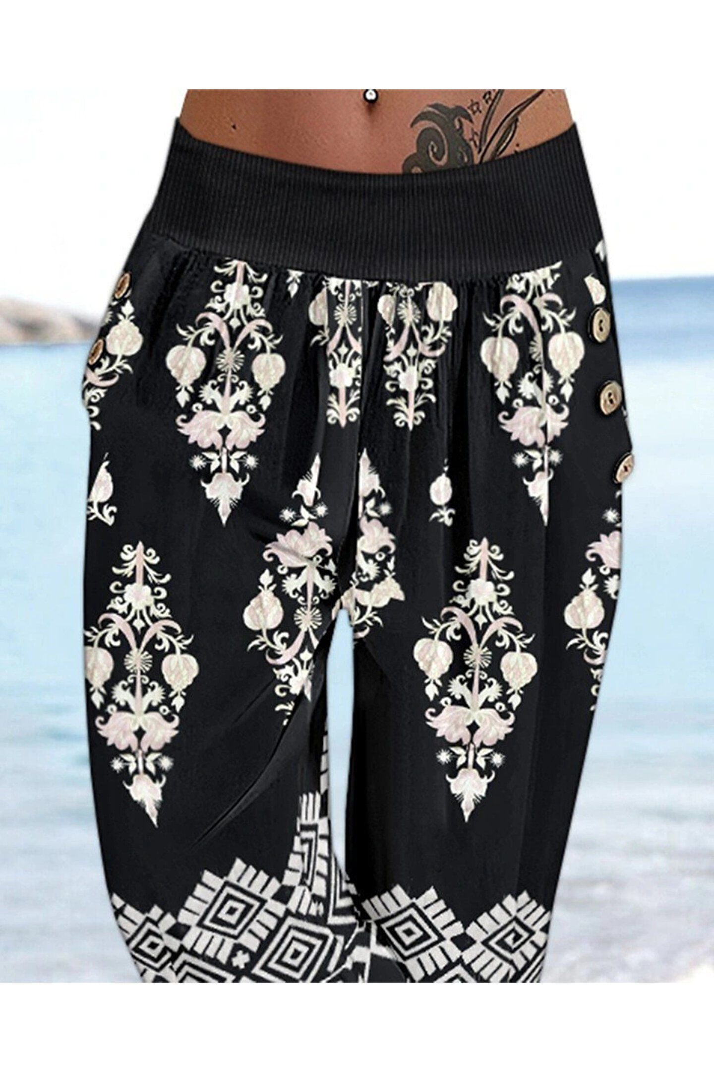 BETÜŞ WEAR Kadın Beli Lastikli Etnik Desenli Kapri Süprem Pantolon