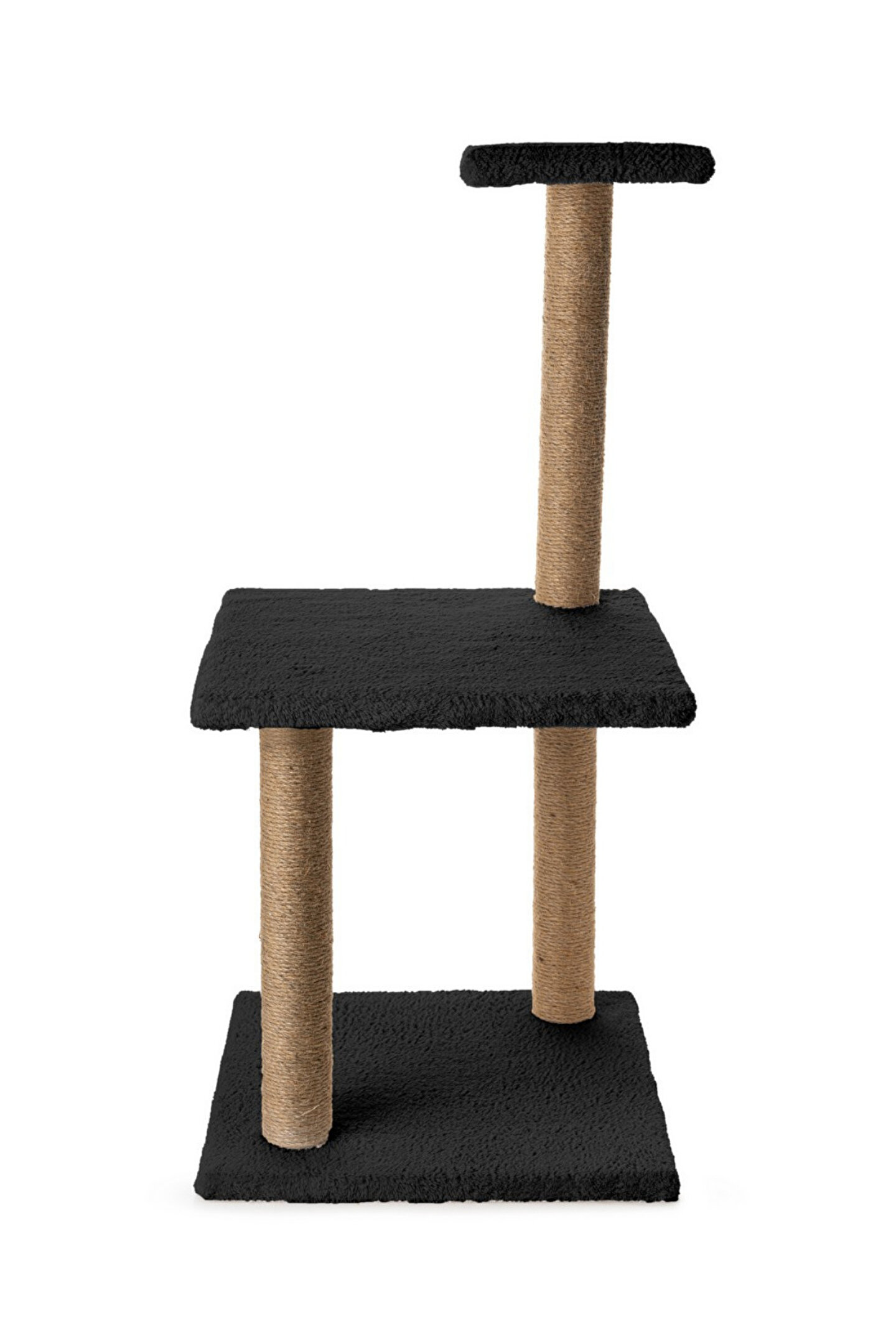 3Lü Kedi Tırmalama Tahtası Peluş Kumaş Demonte 84 cm Yükseklik 3 Adımlı Zıplama Oyunu (Siyah)