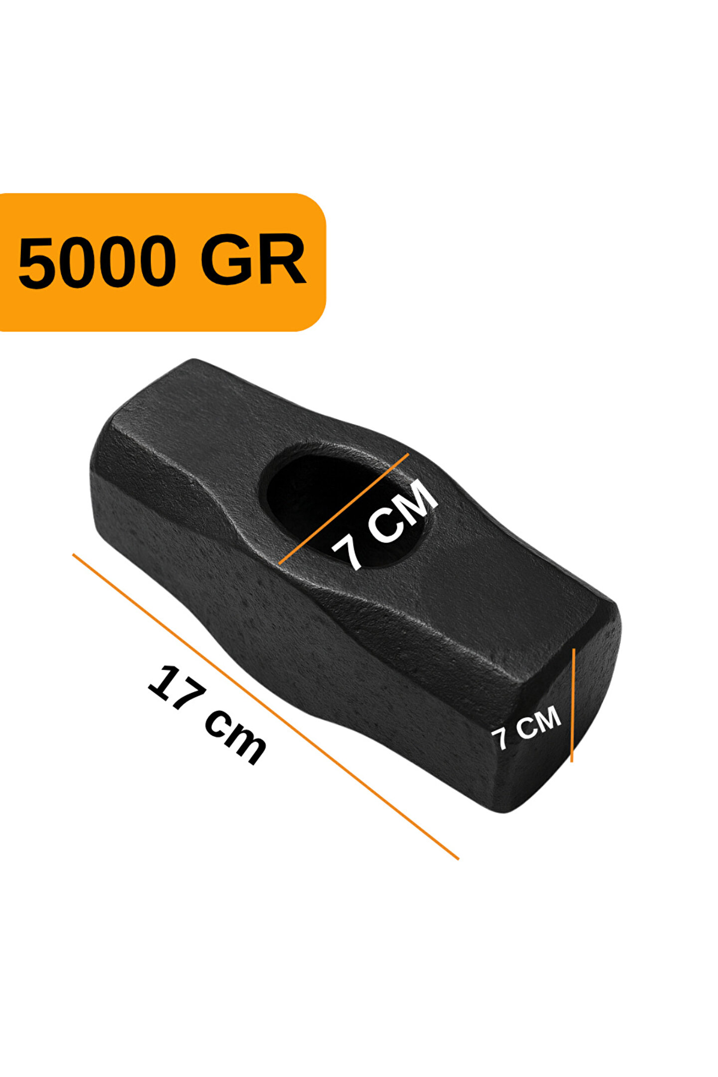 Dayanıklı: 5 KG ağırlığındaki bu balyoz başı, yüksek mukavemetli dövme çelikten üretilmiş olup ağır darbelere karşı maksimum direnç sağlar.; ; Çok Amaçlı: Beton, taş ve metal yüzeylerde güçlü kırma, yıkım ve şekil verme işlemleri için uygundur.; ; Profesyonel Kullanım: Ağır sanayi, büyük ölçekli inşaat projeleri, yol yapımı ve şantiye yıkım işlerinde üstün sunar.; ; Uyumlu: Standart ve kalınlaştırılmış balyoz saplarına uyumlu 3 cm çapında sap giriş bölümüyle sap değişimi kolay ve güvenlidir.; ; Güvenilir: Denge merkezi optimize edilmiştir; profesyonel işlerde kontrollü güç aktarımı sağlar ve iş güvenliğini artırır.; ; Uzun Ömürlü: Korozyona dayanıklı yüzey kaplaması ve güçlendirilmiş yapı sayesinde uzun yıllar performansını korur.; ; Endüstriyel Standart: Yoğun ve profesyonel kullanım için geliştirilmiş ağır hizmet tipi balyoz başı, endüstriyel kalite güvencesiyle üretilmiştir.