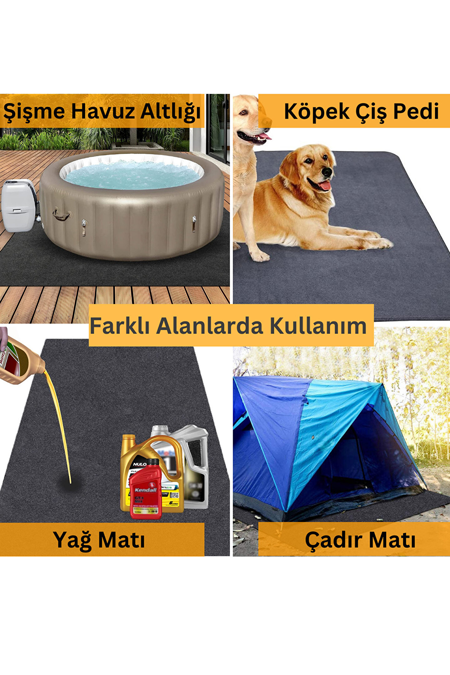 Yoga matı, Evcil Hayvan Alanı, Şişme Havuz Halısı, Yağ Sızıntısı Olabilecek Alanlarda da Kullanılabilir