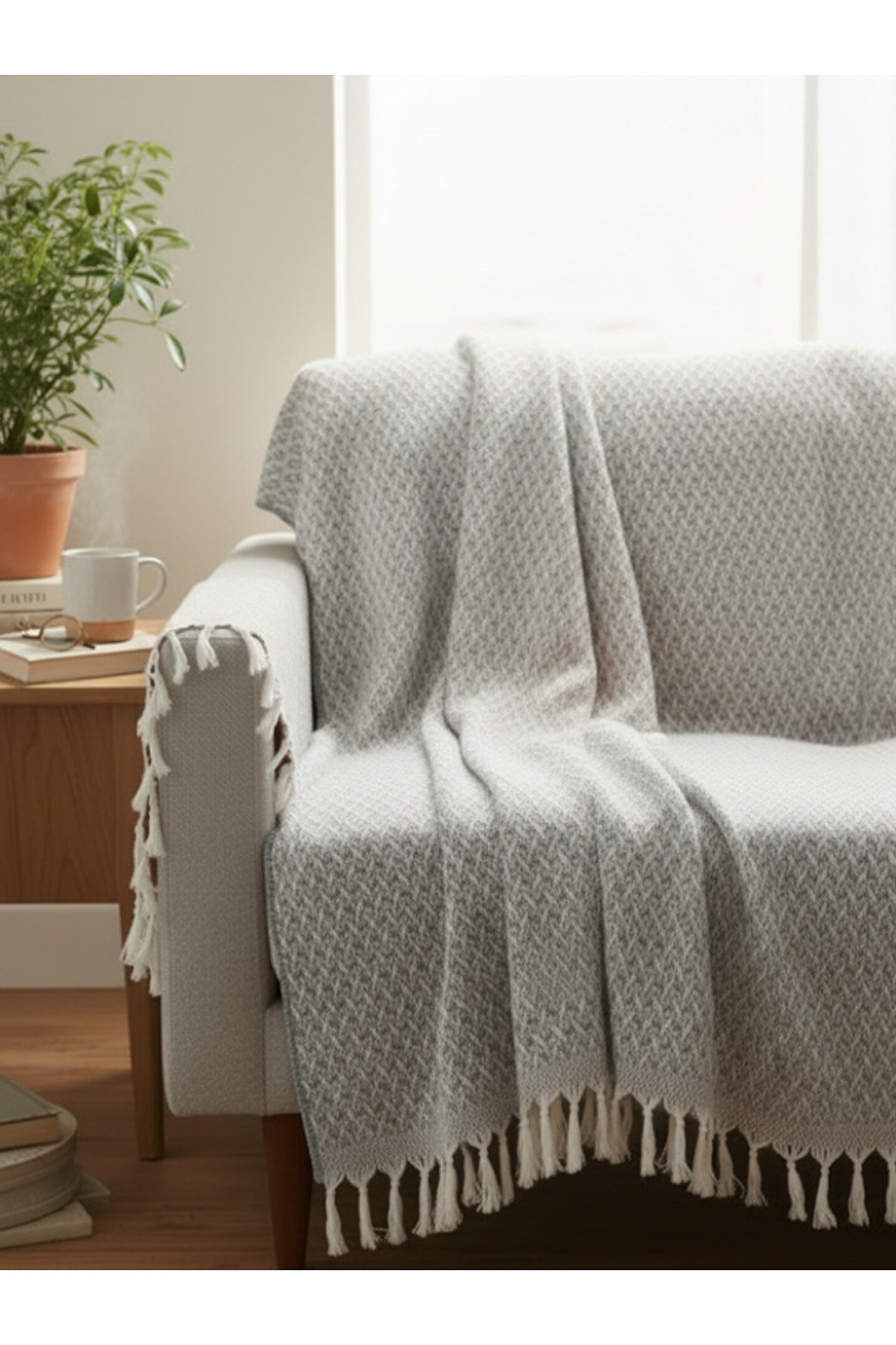 Şık Tasarım: Minimalist düz deseni her dekorasyona uyum sağlar, saçak detaylarıyla estetik bir görünüm kazandırır.