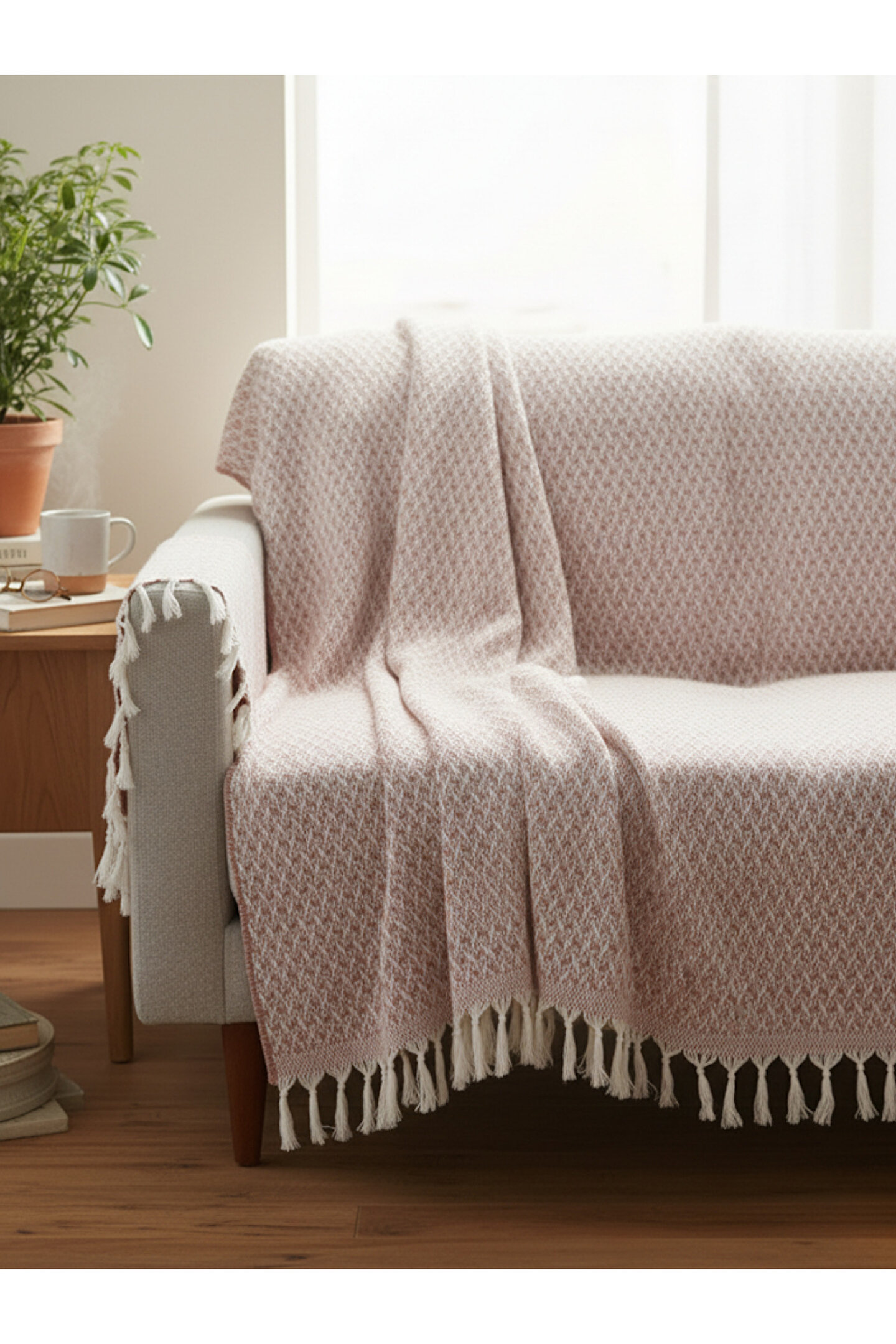 Şık Tasarım: Minimalist düz deseni her dekorasyona uyum sağlar, saçak detaylarıyla estetik bir görünüm kazandırır.