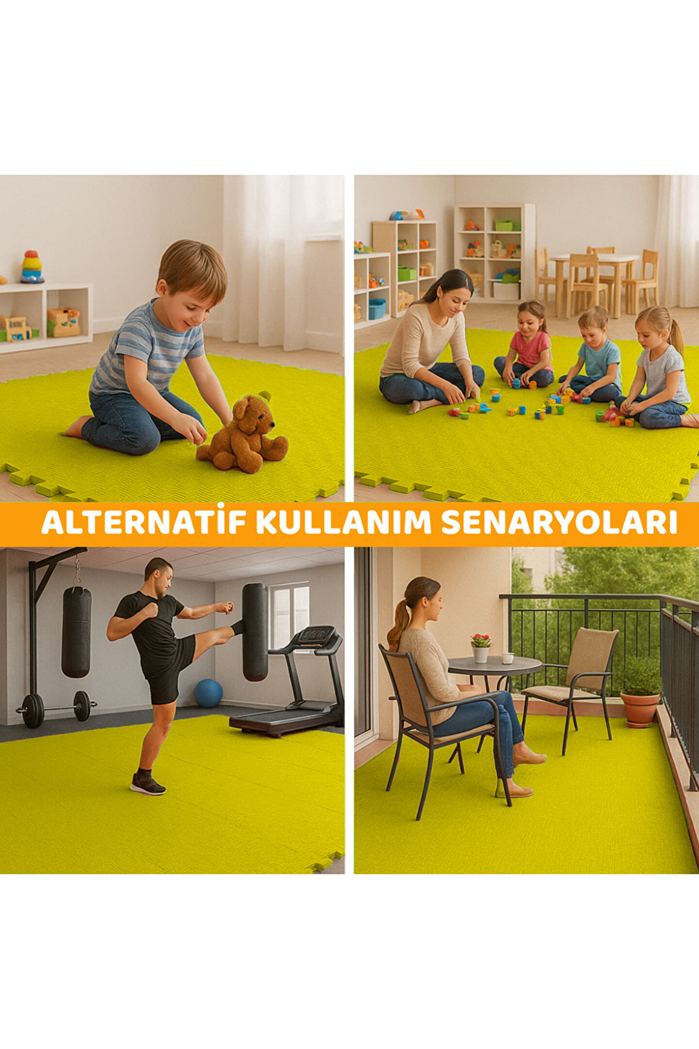 Çok amaçlı kullanım: Spor salonu, çocuk oyun alanı, balkon, ev içi egzersiz alanları gibi farklı zeminler için uygundur.