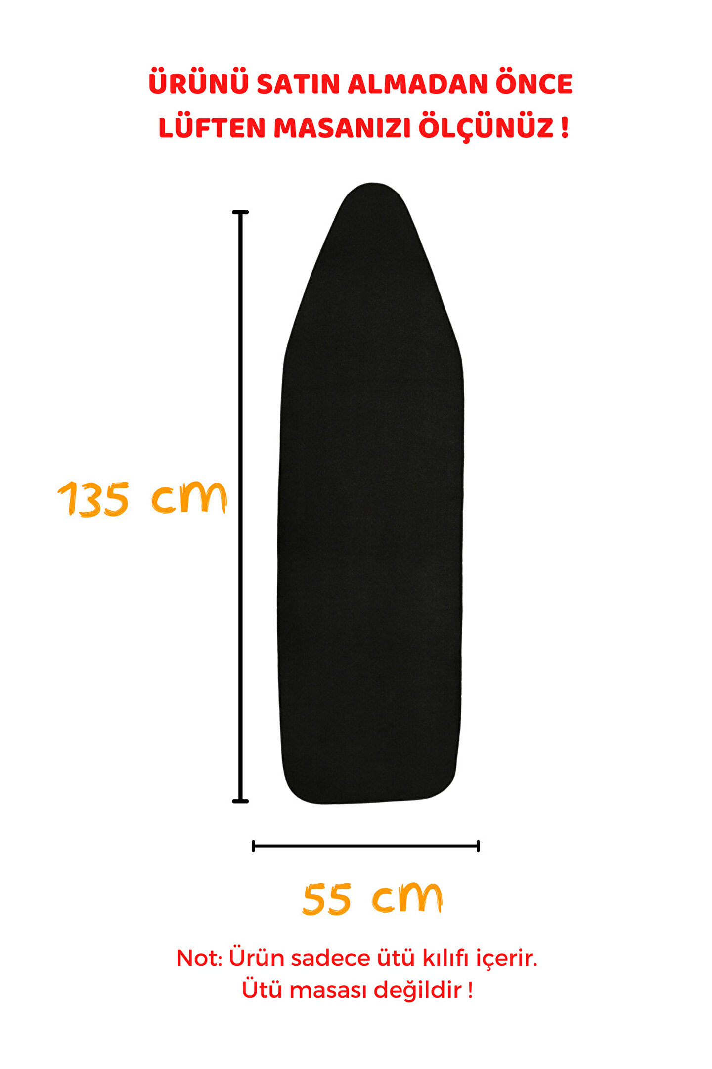 BEYLİNİ Ütü Masası Kılıfı Lastikli Keçeli Yanmaz Ütü Masası Örtüsü Bezi Siyah 55x135 CM