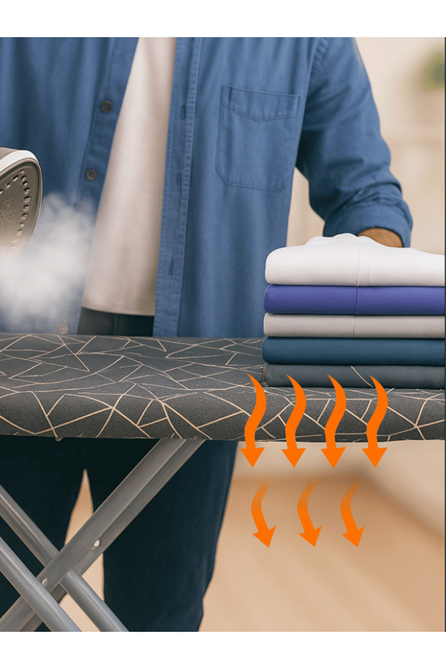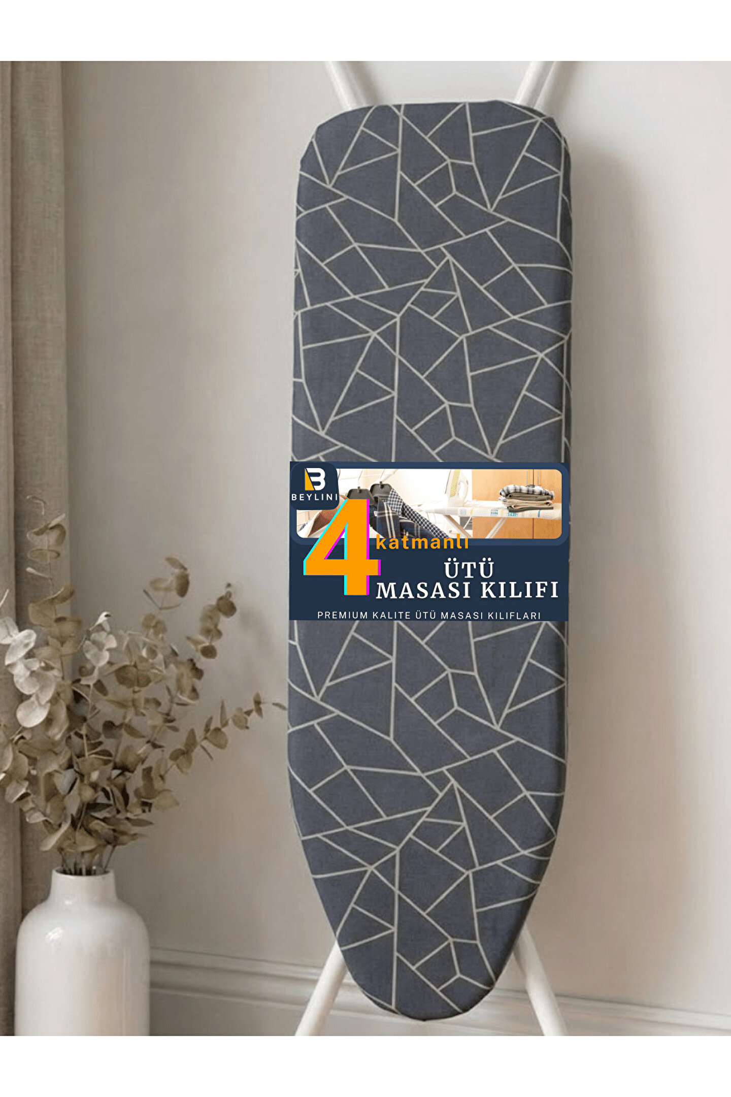 4 Katmanlı Premium Ütü Masası Kılıfı Ölçü: 50x150 cm (38-43 cm x 135-143 cm masalara uyumludur) Malzeme: %100 Pamuk Kumaş, Silikon Kaplama, 4 mm Sünger ve Polyester Keçe Isı Dayanımı: 230°C’ye kadar yüksek ısıya dayanıklıdır Yıkama: 30°C’de makinede veya elde yıkanabilir Üretim: %100 Yerli & Milli Ürün Özellikleri 4 Katmanlı Yapı: 1. Katman (Silikon Kaplama): Yanık ve leke izlerini engeller.; 2. Katman (Pamuk Kumaş): Doğal, sağlıklı ve ütüleme için özel dokuma.; 3. Katman (Sünger): 4 mm kalınlık, konforlu ütüleme.; 4. Katman (Keçe): Yüksek kaliteli hammadde, maksimum buhar geçirgenliği.; Laminasyon Tekniği: Katmanlar birbirine yapıştırılmıştır; kayma yapmaz, buharı maksimum geçirir.; Enerji Tasarrufu: Isıyı homojen yayarak ütüleme süresini kısaltır, elektrik tüketimini azaltır.; Ayarlanabilir Lastik Mekanizma: 15 tel lastik ve stoper sayesinde masaya tam oturur, kayma yapmaz.; Sağlıklı & Güvenli: Kimyasal ve kanserojen madde içermez, çevre dostudur.; Premium Kalite: Kalın, yüksek dolgulu yapısı ile pürüzsüz ve hızlı ütü deneyimi sağlar.