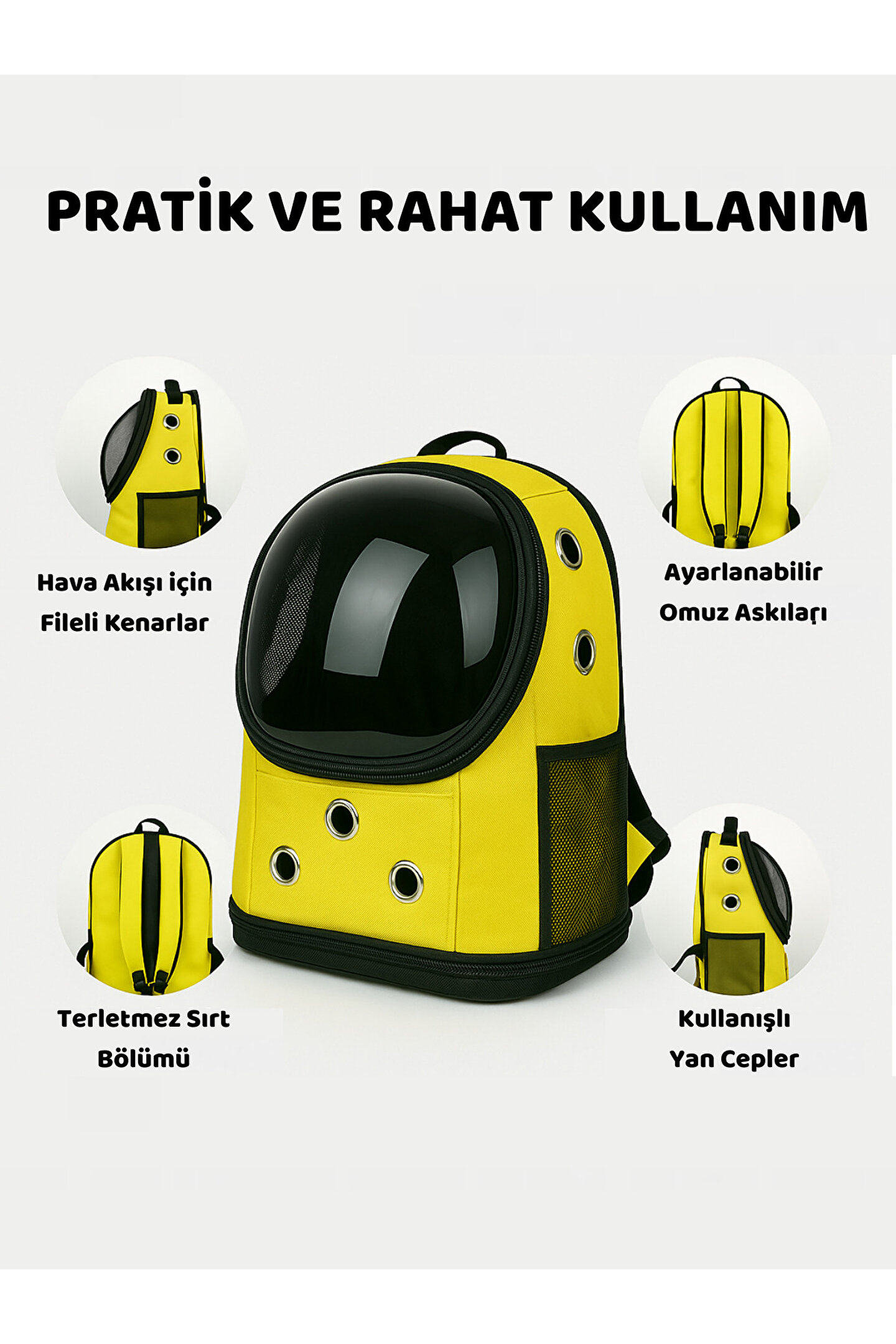 BEYLİNİ Yıkanabilir Şeffaf Kedi ve Köpek Taşıma Çantası 7 Hava Kanalı Fileli Ceplerle Pratik Kullanım Sarı