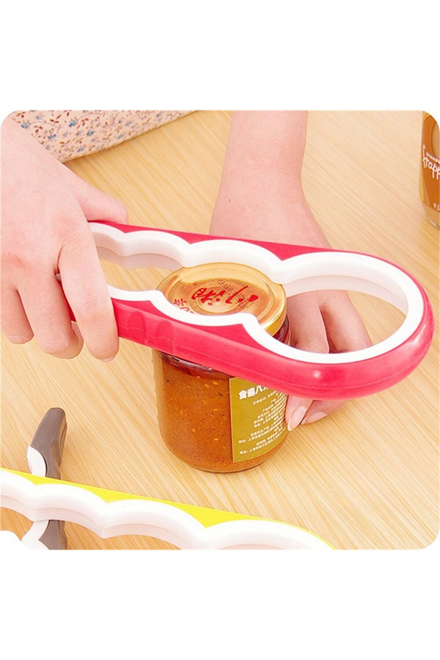4 boy sıkışmış şişe kavanoz konserve kapağı açma aparatı açacağı kavanoz, şişe vb; Eşyaları açmakta zorlananlar için tasarlanmış 4 farklı açma dişine sahip pratik kavanoz ve şişe açacağı; Mutfağınızdaki her türlü şişe, kavanoz, kapak vb; Eşyaları zorlanmadan açmak için tasarlanmış pratik kavanoz ve şişe açacağı; Şişe ve konserve açacağının özel tasarımı ve kullanımı sayesinde tüm konserve kapaklarını çok kolay bir şekilde açabilirsiniz; Şişe açacağı kola, gazoz kapaklarını açmak için de kullanabilirsiniz; Parmaklarınızı yormadan güçlü ve hızlı bir şekilde tüm kapak ve kavanozları açabileceksiniz; En çokta bayanların işine yarayacak kavanoz açıcı oldukça şık ve pratik bir yapıya sahiptir; Mutfağınızdaki kurtarıcınız olacak kavanoz açma aparatı ile dilediğiniz kavanoz ve konserveleri zorlanmadan açabileceksiniz; 4 farklı açma dişi sayesinde farklı boyutlardaki şişe, kapak veya kavanozları rahatlıkla açabilirsiniz; Kavanoz ve şişe açacağı özellikleri: Güvenli bir şekilde kavanoz ve şişe kapaklarını kolayca açmanızı sağlar! Cam şişe kapakları, meşrubat, konserve açacağı vs; Gibi 4 farklı açma dişi ile mutfağınıza büyük bir yardımcı!! çok işlevli açacak ile açılması zor kapakları açmaya hazır olun; Kauçuk dişler kolayca kapakları kavrar ve sıkıştırır, böylece bir zarar vermeden kapağın açılmasını sağlar; Kapakları daha güvenli bir şekilde açmanıza yardımcı olur; Tutuşu ve kullanımı kolaydır; Bayanlar fazla güç kullanmadan açamadıkları kavanoz ve şişeleri artık kolayca açabilirler; Not: Stok durumuna göre karışık renklerde gönderilecektir; Şişe ve kavanoz açacağı ölçüleri: 23 cm x 9 cm; Çap boyutları: Büyük diş: 7; 5 ~ 8; 5 cm; Orta diş: 5 ~ 7; 5 cm; Küçük diş: 3; 5 ~ 5 cm; En küçük diş: 2 ~ 4 cm; ;;