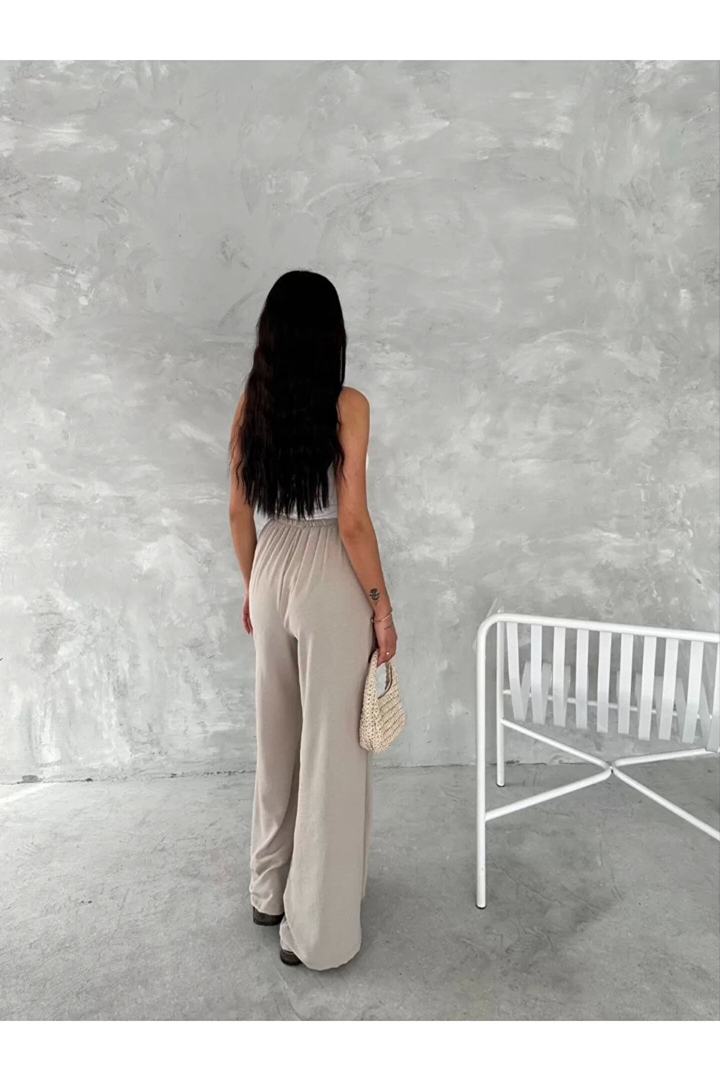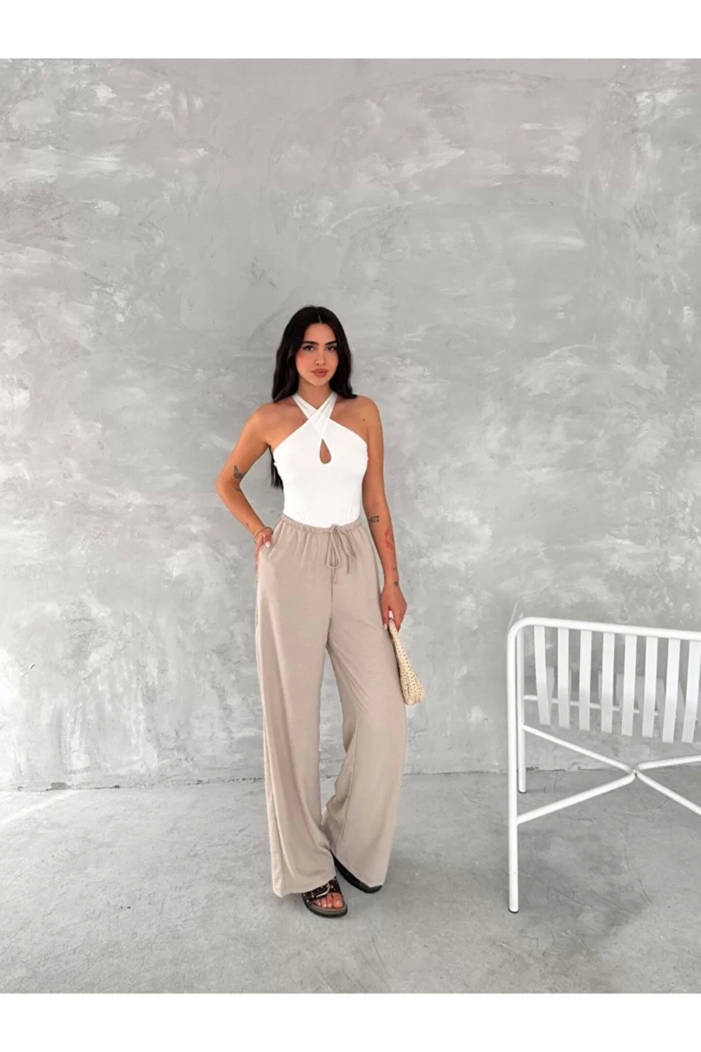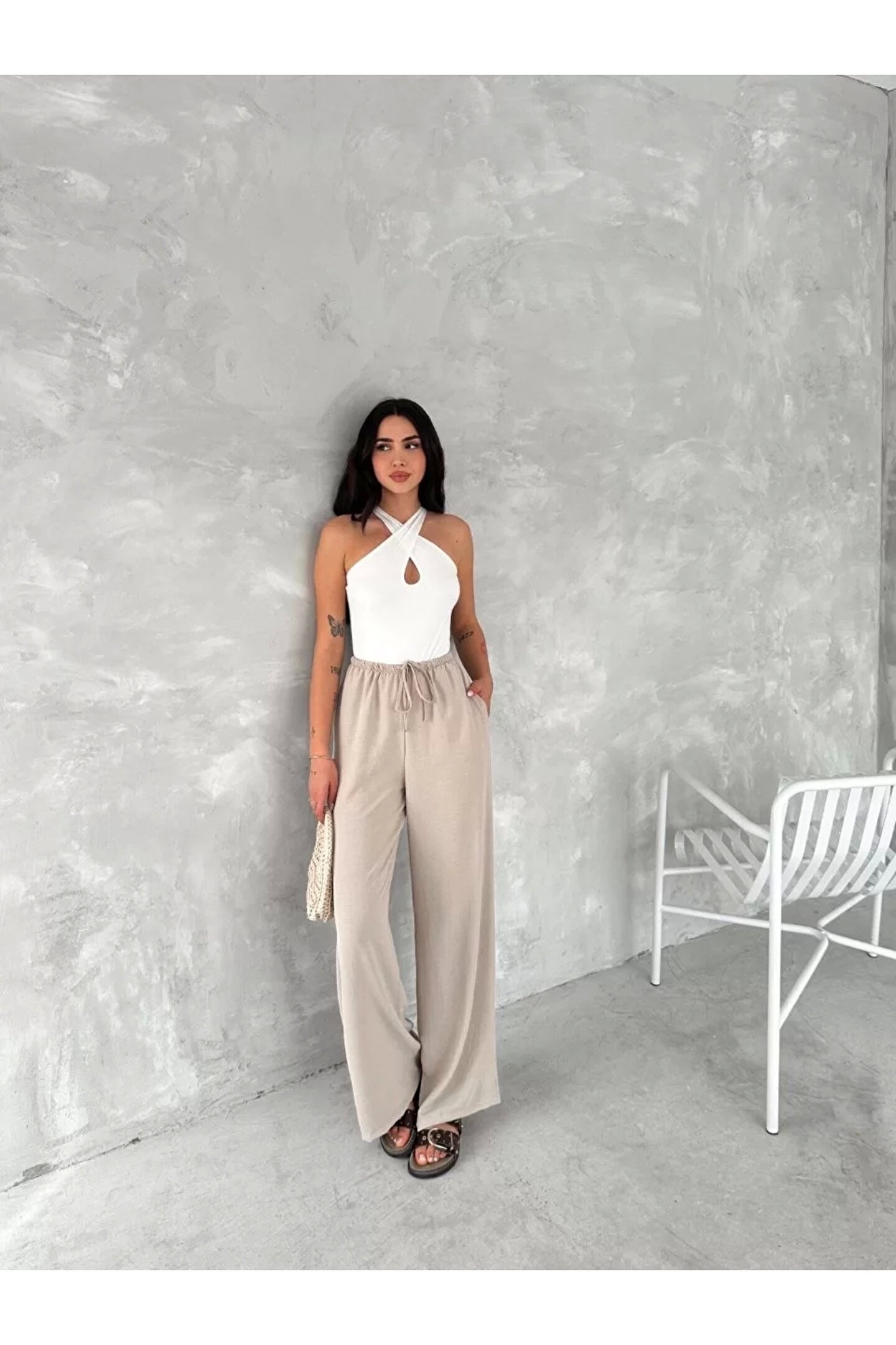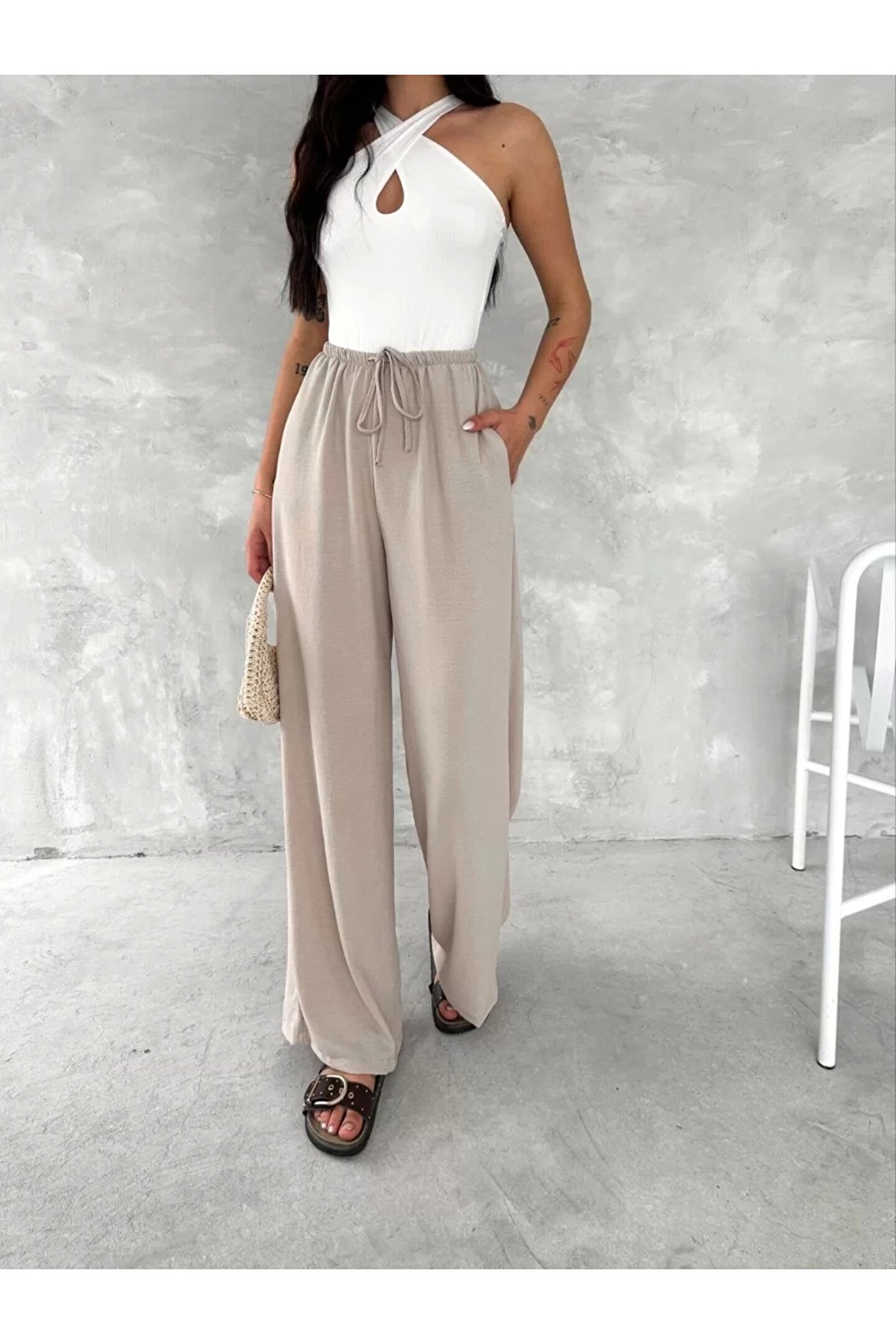 Bijuterria Ayrobin Oversize Kadın Pantalon - Bej