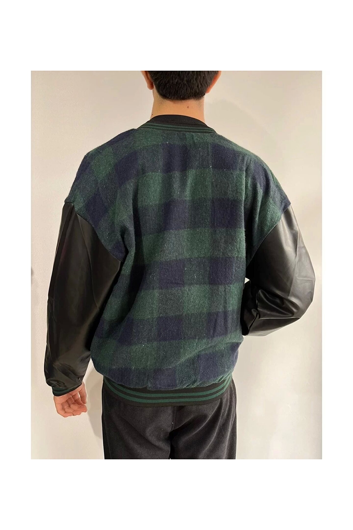Erkek Pötikare Desen Nakışlı Kolej Ceket - Haki