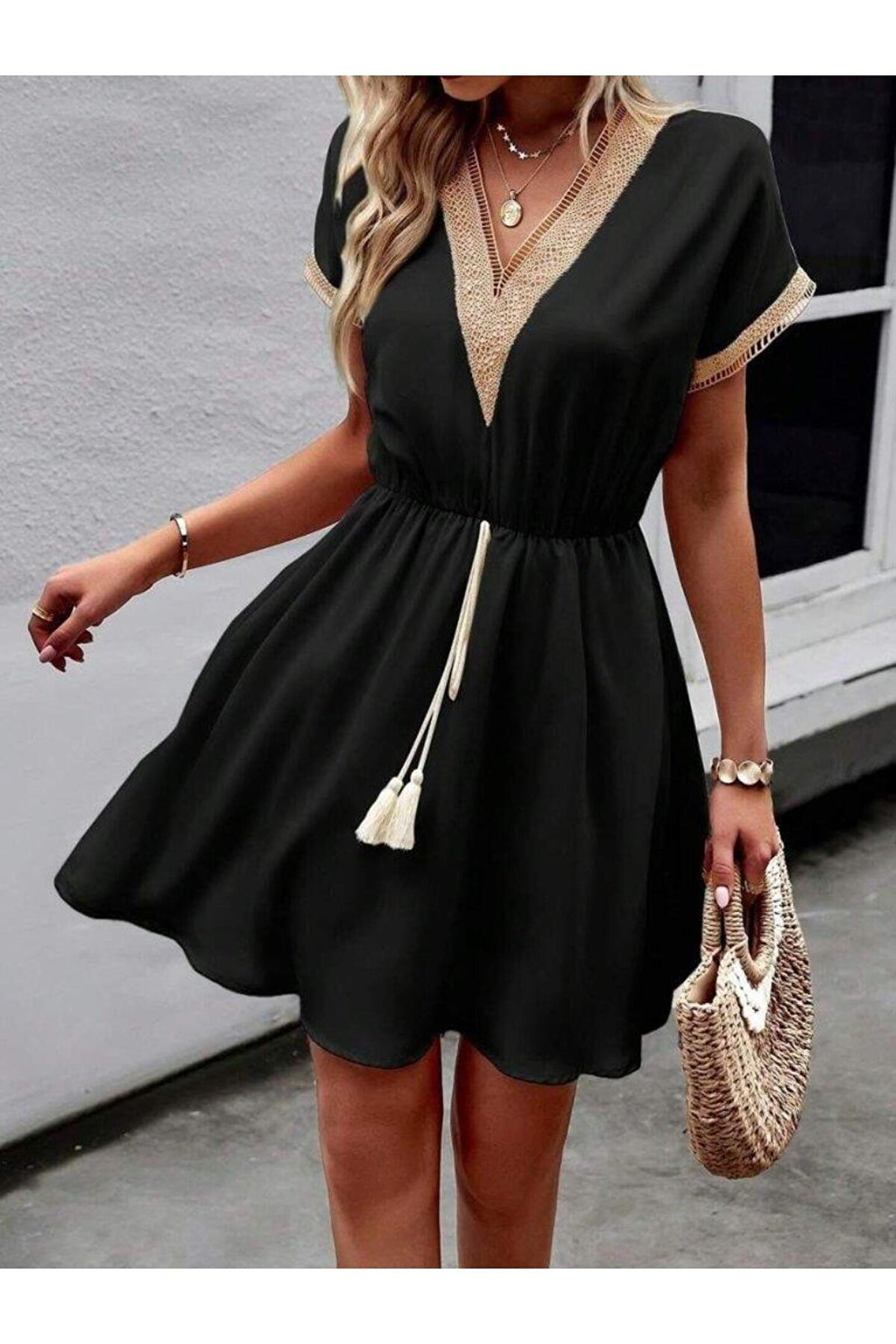 Bijuterria Kadın Kısa Kollu V Yakalı Belinde Bağcıklı Viskon Elbise