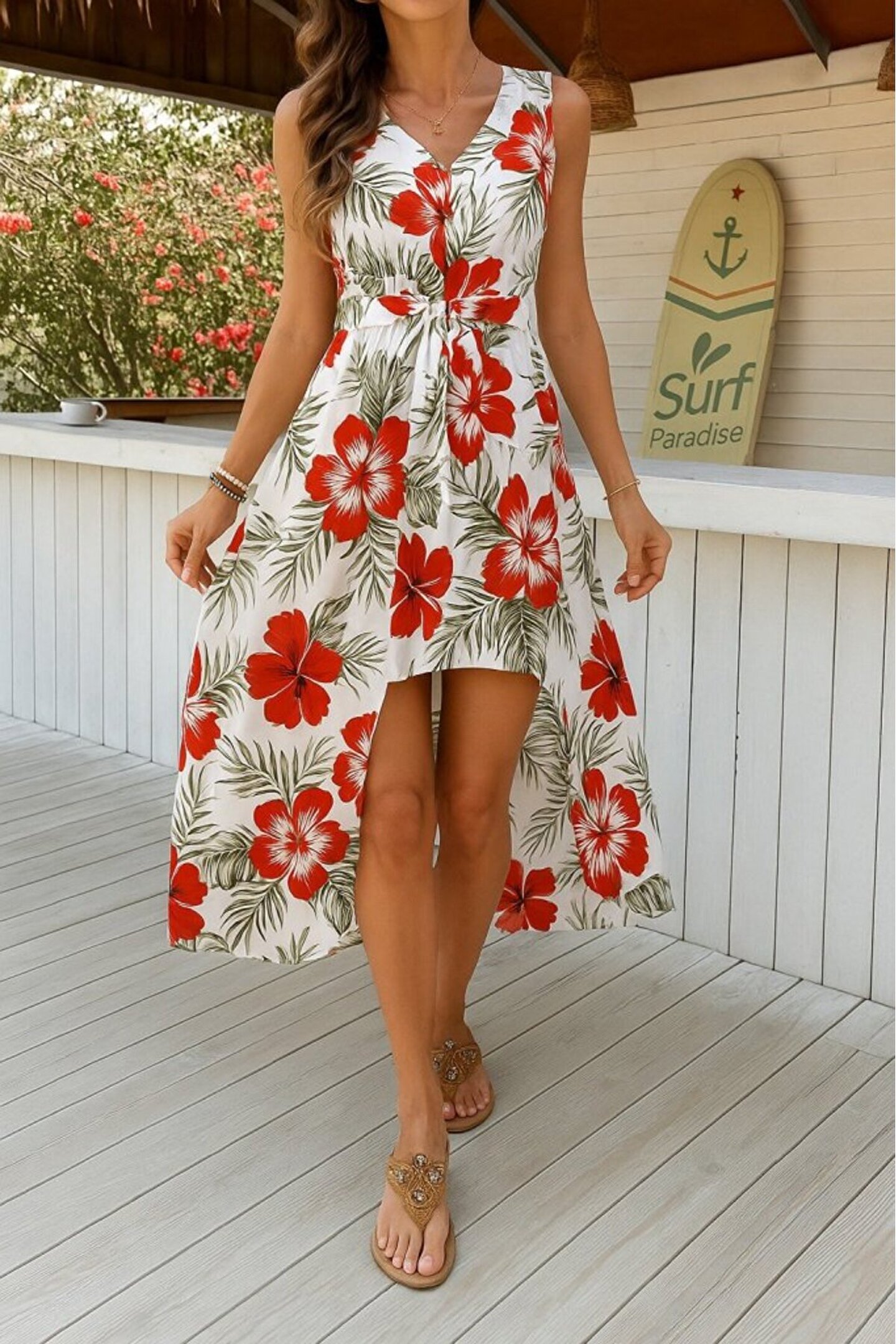Kadın Kolsuz V Yakalı Desenli Süprem Tulum Elbise