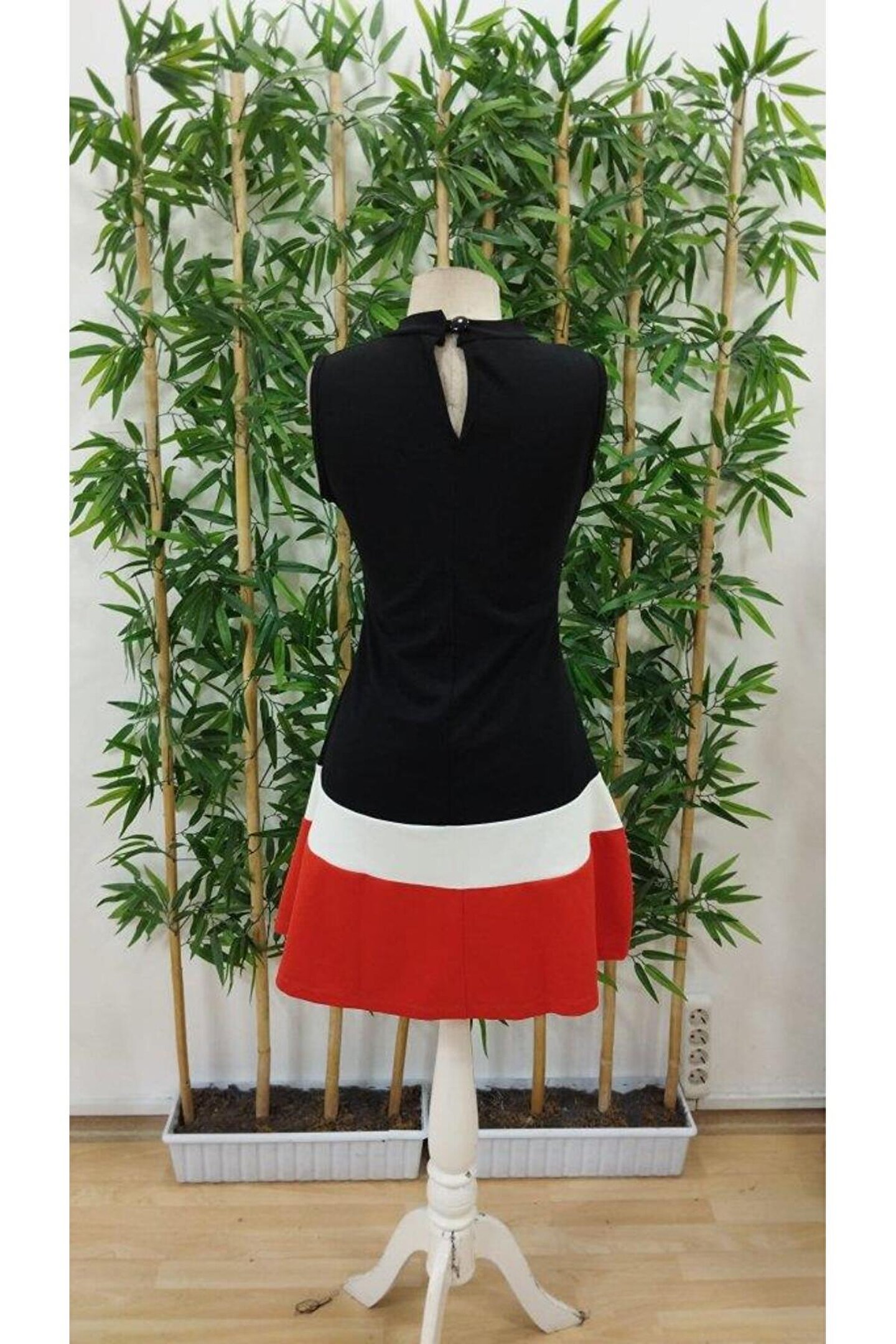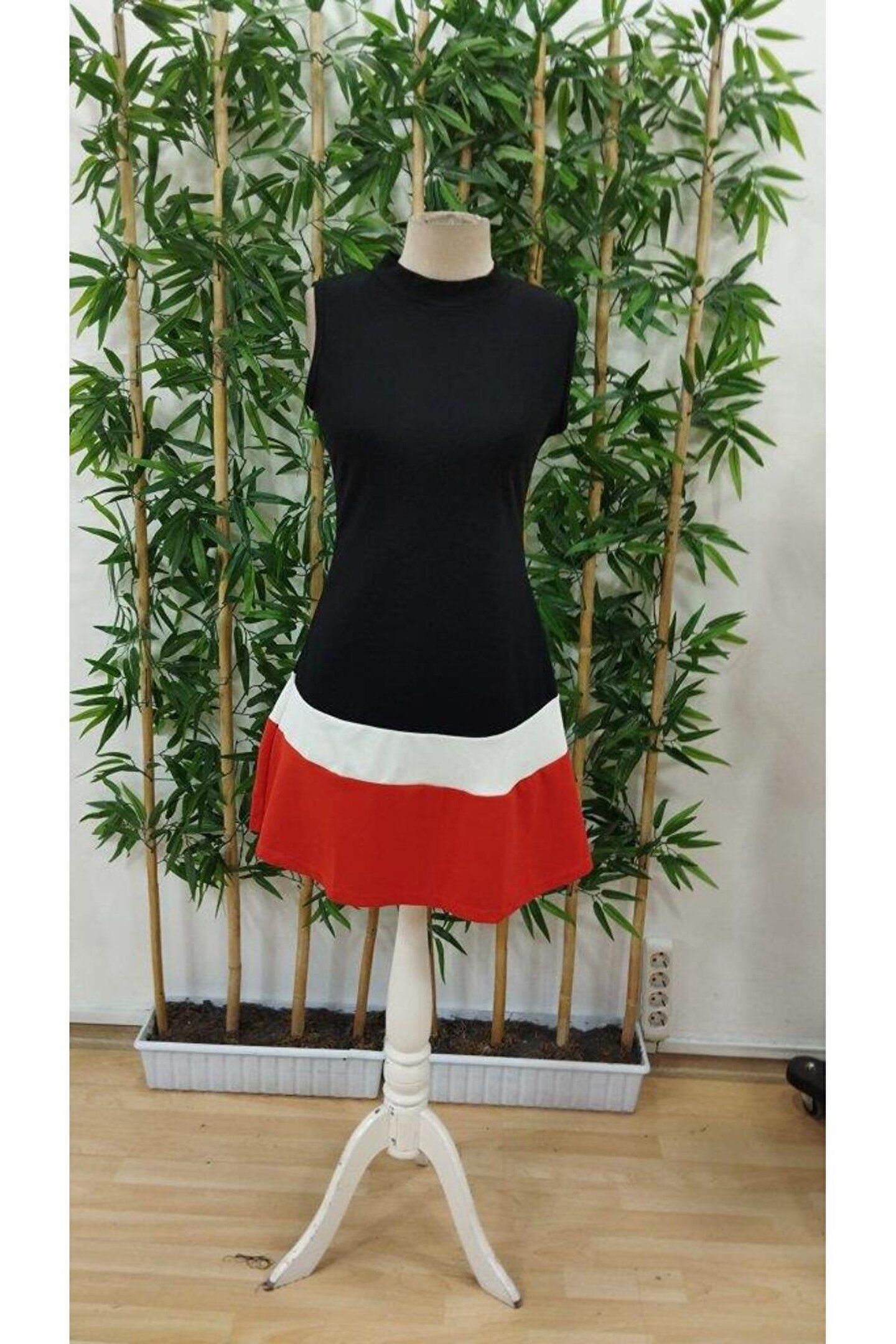 Kadın Sıfır Kol Yarı Balıkçı Yaka şerit Detaylı Ithal Krep Elbise