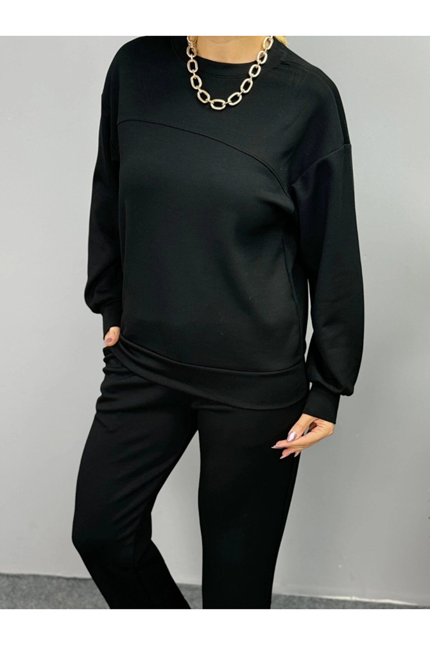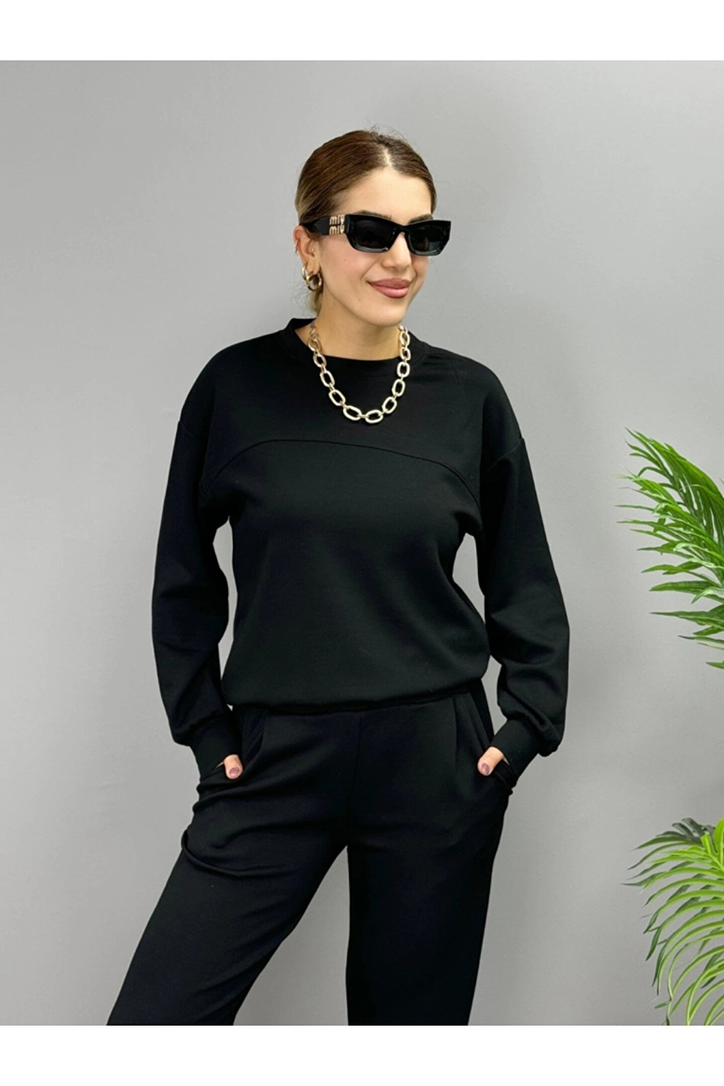Kadın Uzun Kollu Bisiklet Yaka Viskon Iki Iplik Bluz Ve Pantolon Ikili Takım