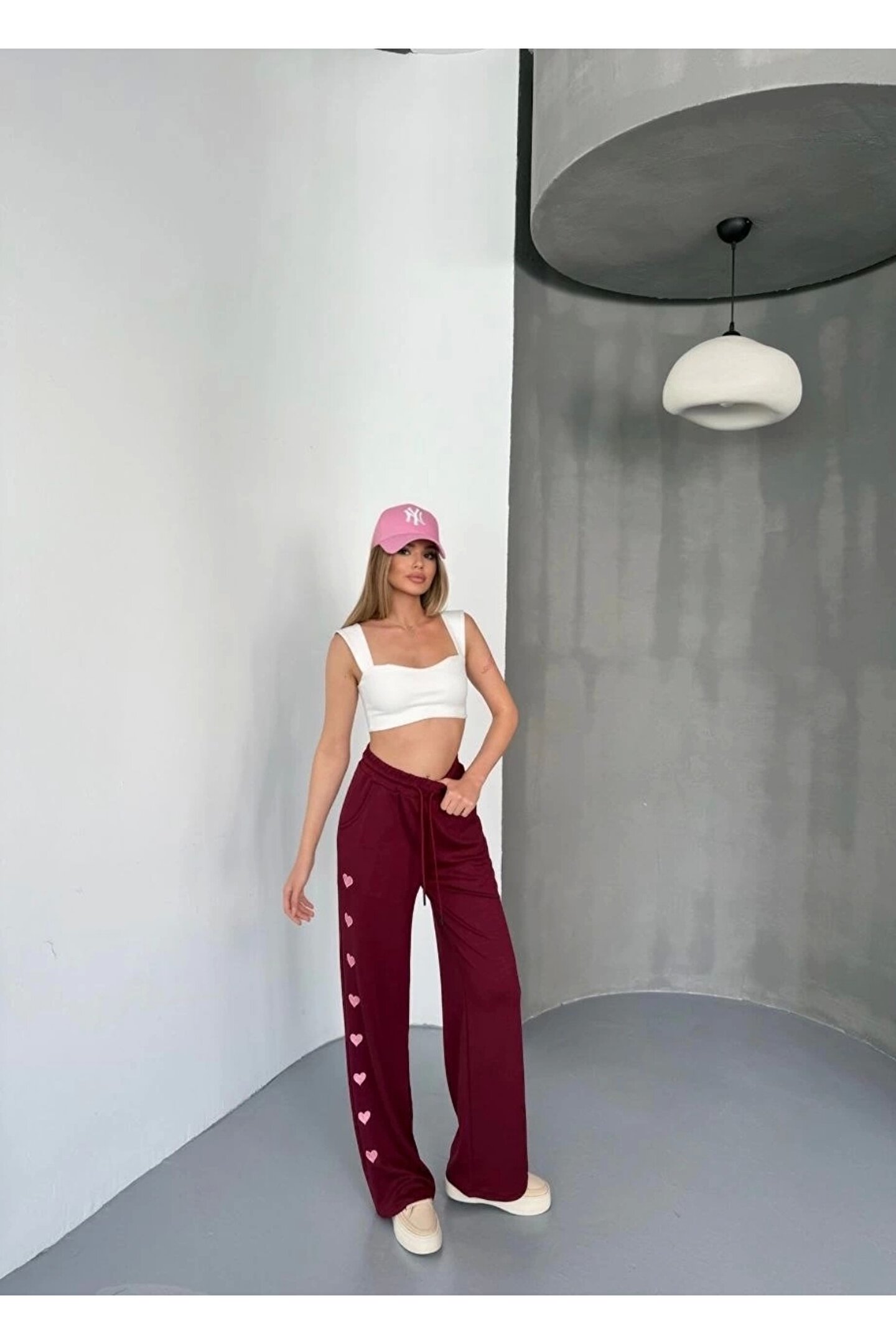 Bijuterria Osy Modal Yumuşak Dokulu Kumaş Nakış işlemeli Rahat Bol Paça Eşofman Pantalon - Bordo