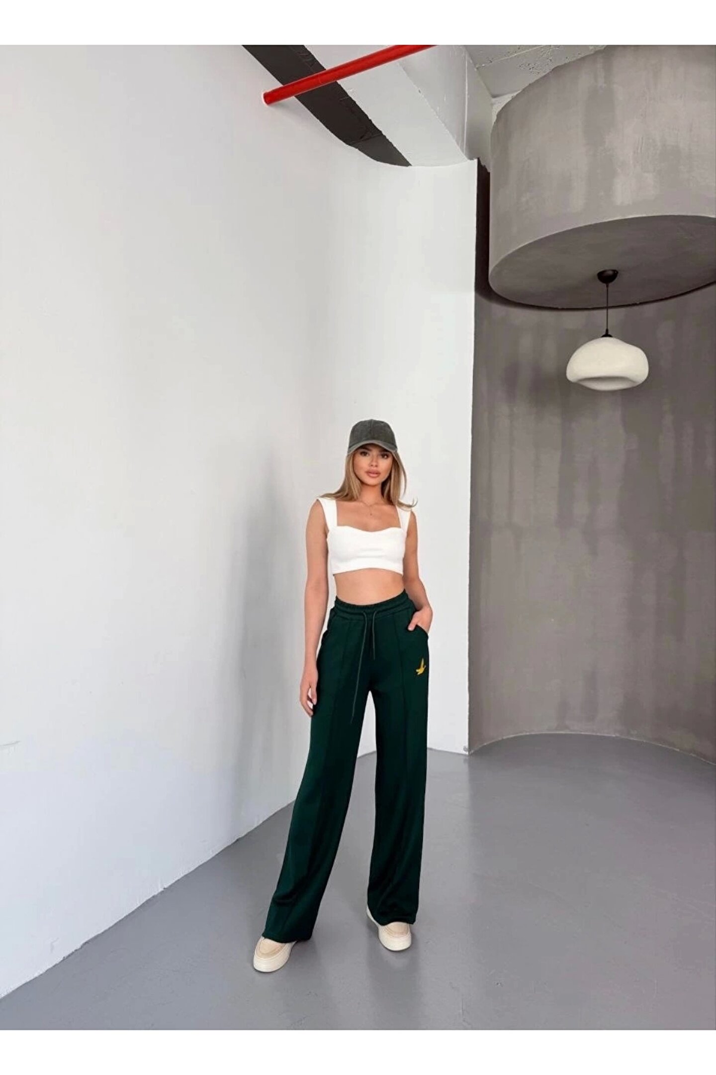 - Yumuşak dokusuyla konfor sunan, nakış işlemeli rahat bol paça eşofman pantolon.; - Beli lastikli tasarımı sayesinde gün boyu rahat hareket etme imkanı sağlar.; - Ter tutmayan kumaşı ile spor aktivitelerinizde bile serin kalmanızı destekler.; - Günlük kullanım için ideal olan bu pantolon, casual tarza sahip bireylerin tercihi olacak.; - Lastikli bel detayı ile mükemmel oturuş ve esneklik sunar; her vücut tipine uyum sağlar.; - Her mevsim rahatlıkla tercih edebileceğiniz, çok yönlü kullanım vaat eder.; - Genç ve dinamik stil sahibi kişiler için tasarlanmıştır; enerjik görünümünüzü tamamlar.; - Standart boy kesimiyle farklı vücut tiplerine uygunluk gösterirken şık bir siluet oluşturur.; - Boru paça tasarımı modern ve zamansız bir görünüm kazandırırken, günlük kombinlerinizde fark yaratmanızı sağlar.; - Pamuklu materyali sayesinde cildiniz nefes alırken maksimum konfor sunar.; - Regular kalıp ile vücudu sarmayan ancak sıkıştırmayan ideal oturuşa sahiptir.; - Cepli yapısı küçük eşyalarınız için pratik saklama alanları sunarken fonksiyonellik katmaktadır.; - Uzun paça boyu bacakları sıcak tutarken şıklığınızdan ödün vermezsiniz.; - Nakışlı / işlemeli deseniyle göz alıcı detaylar ekleyerek kişisel tarzınıza sofistike dokunuşlar ekler.