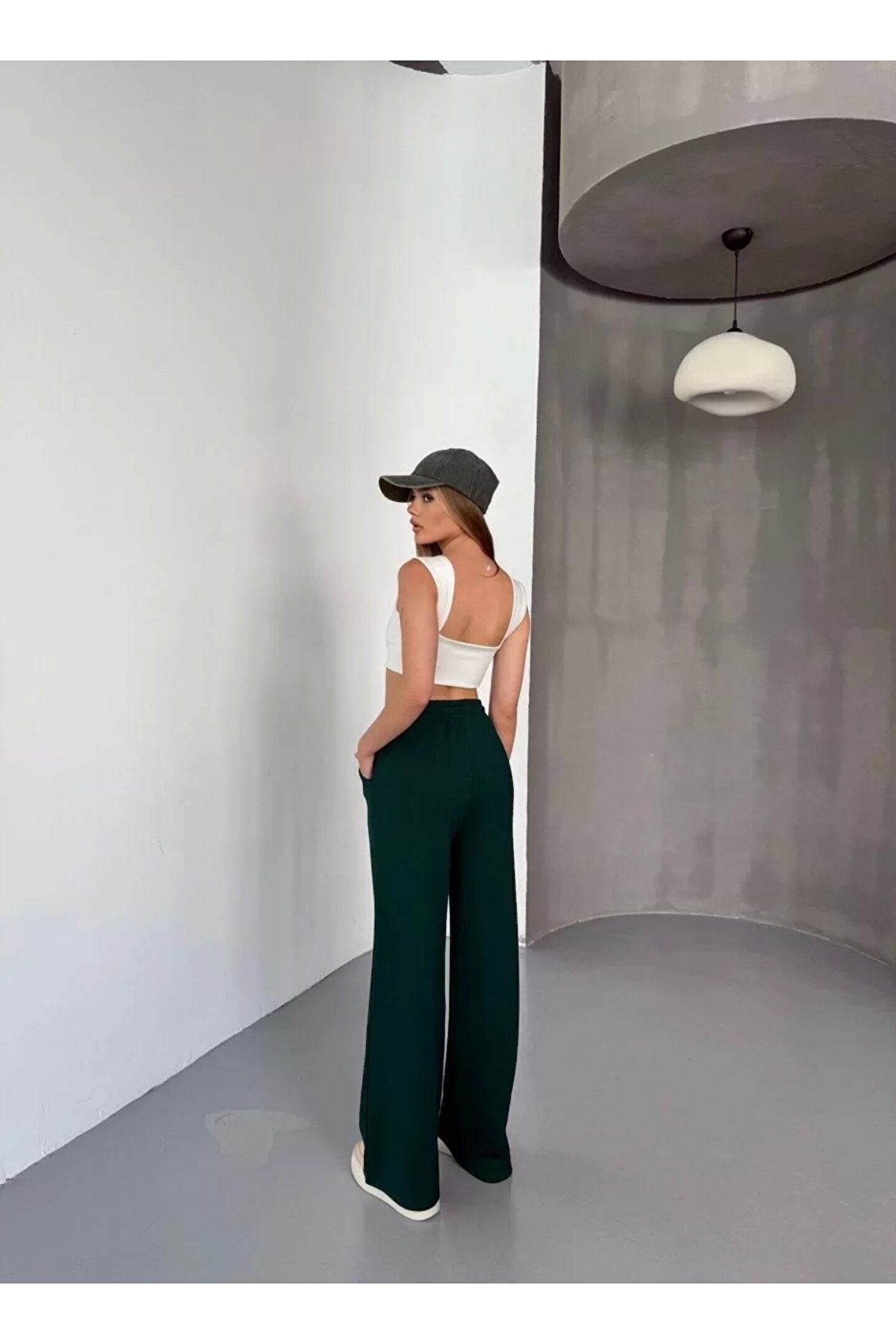 Bijuterria Osy Modal Yumuşak Dokulu Kumaş Nakış işlemeli Rahat Bol Paça Eşofman Pantalon - Yeşil