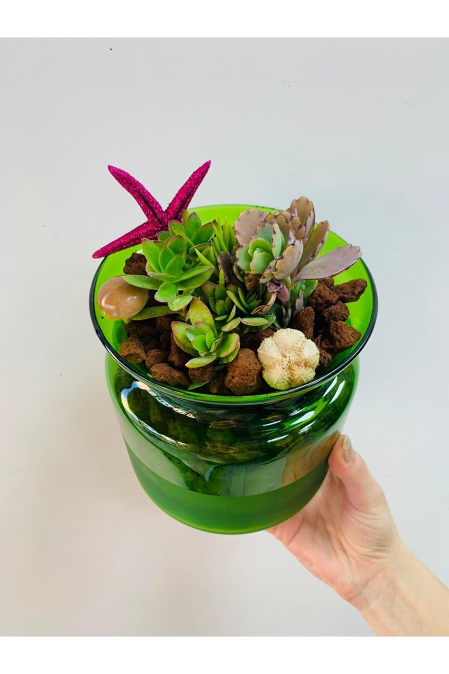 CAM SAKSIDA EKİLİ SUKULENT ARANJMANI