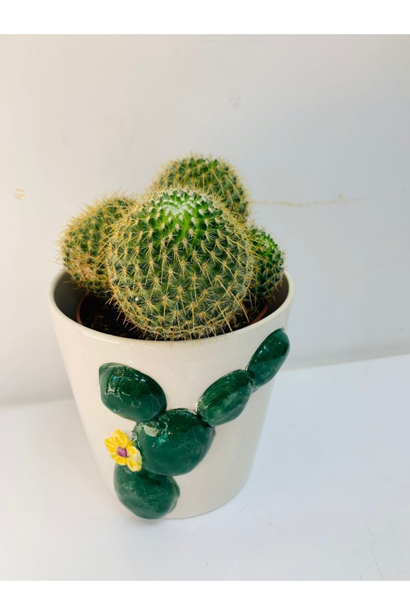 19 cm boyunda 12 cm çapında seramik saksıda ekili kaktüs