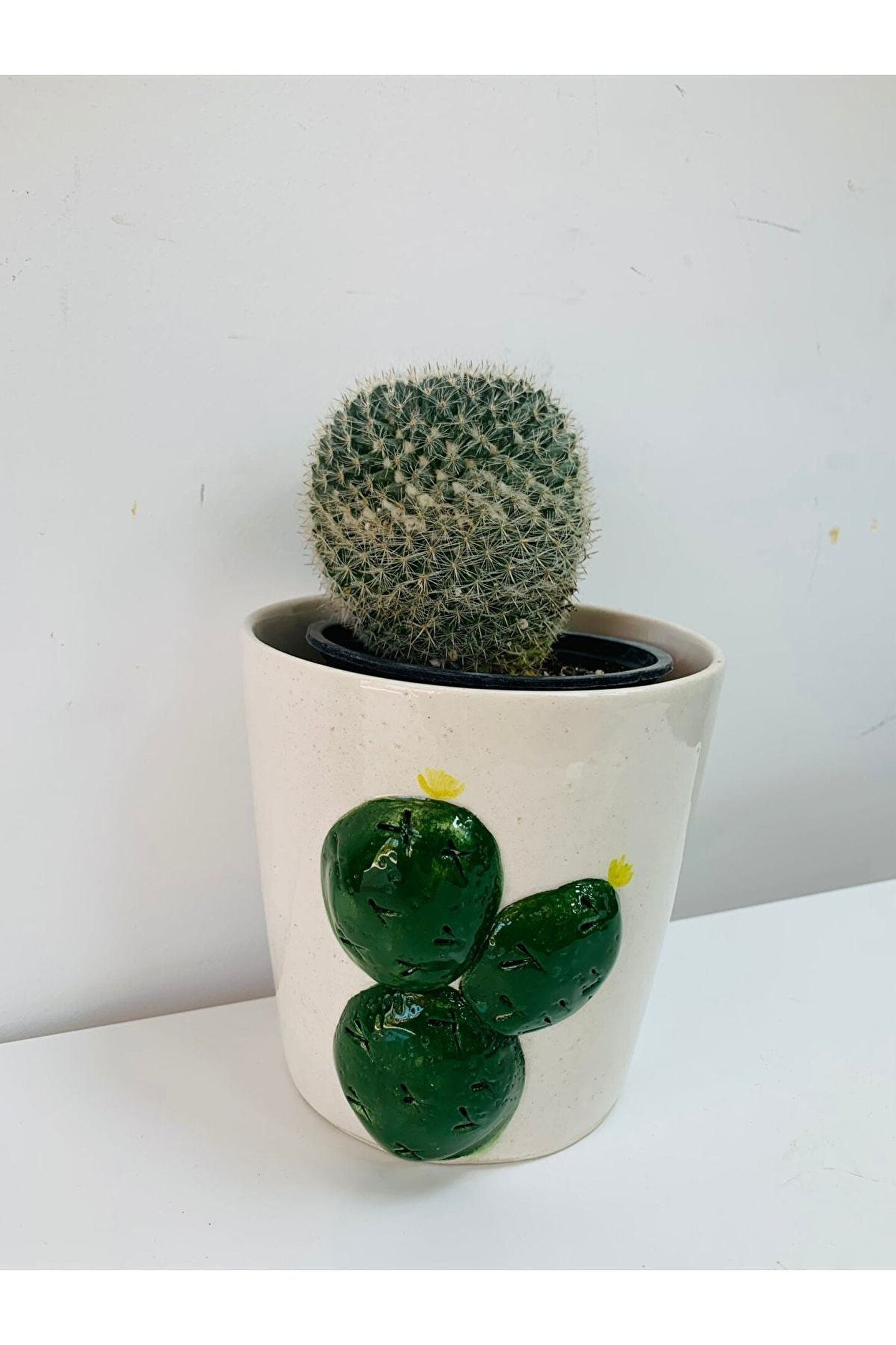 22 cm boyunda 12 cm çapında seramik saksıda ekili kaktüs