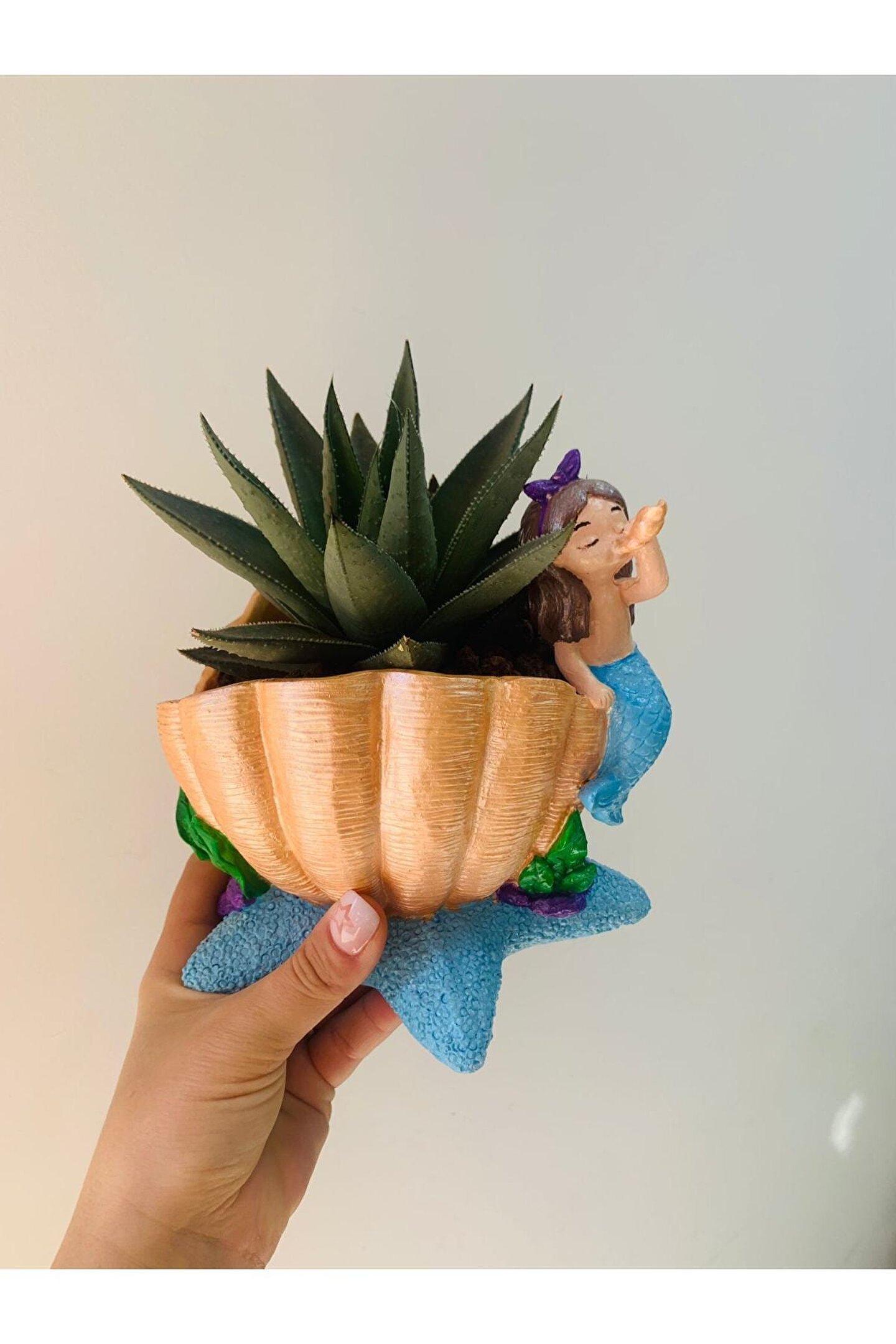 20 cm boyunda 12 cm çapında sukulent ekili deniz kızı saksı
