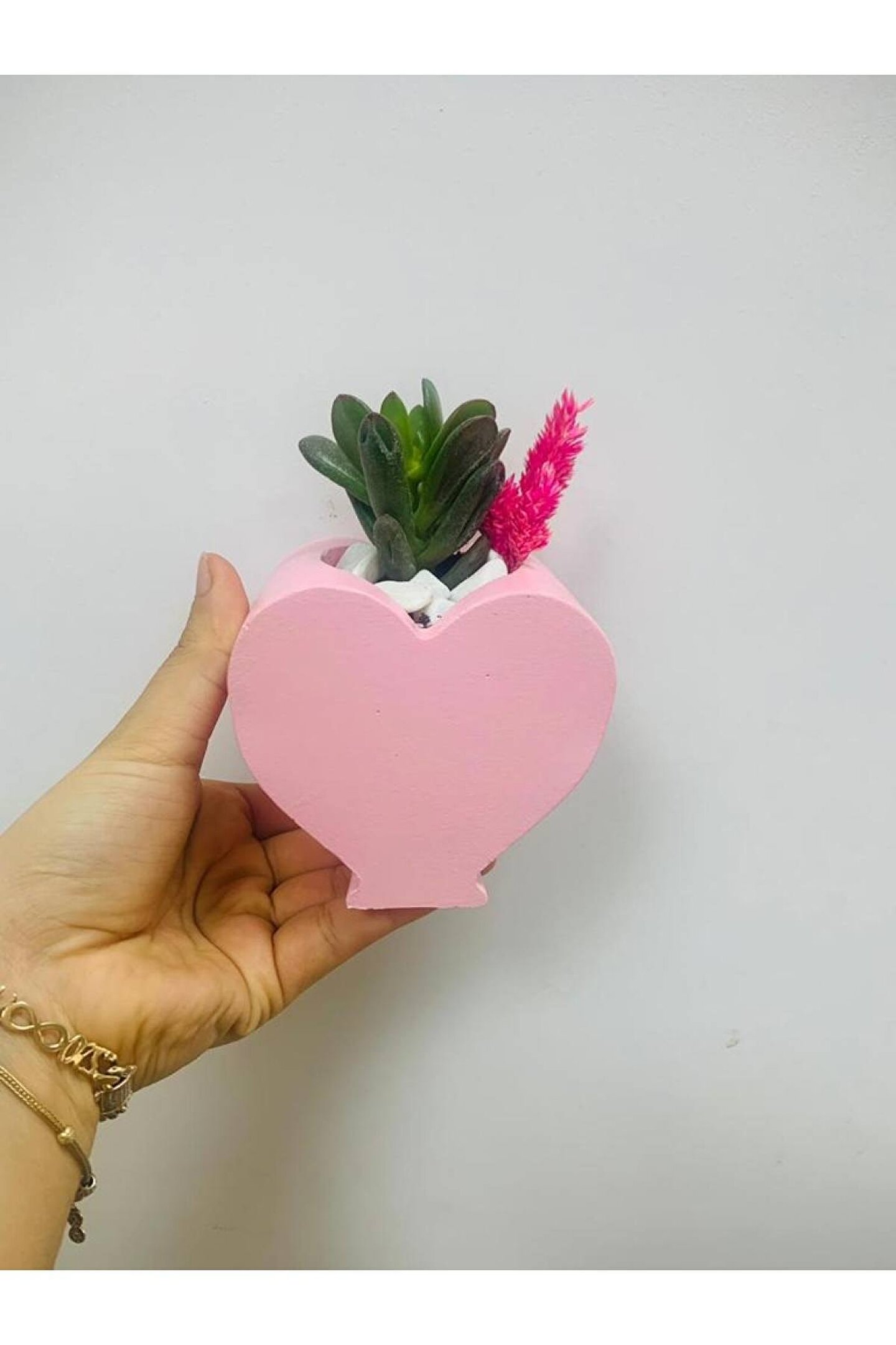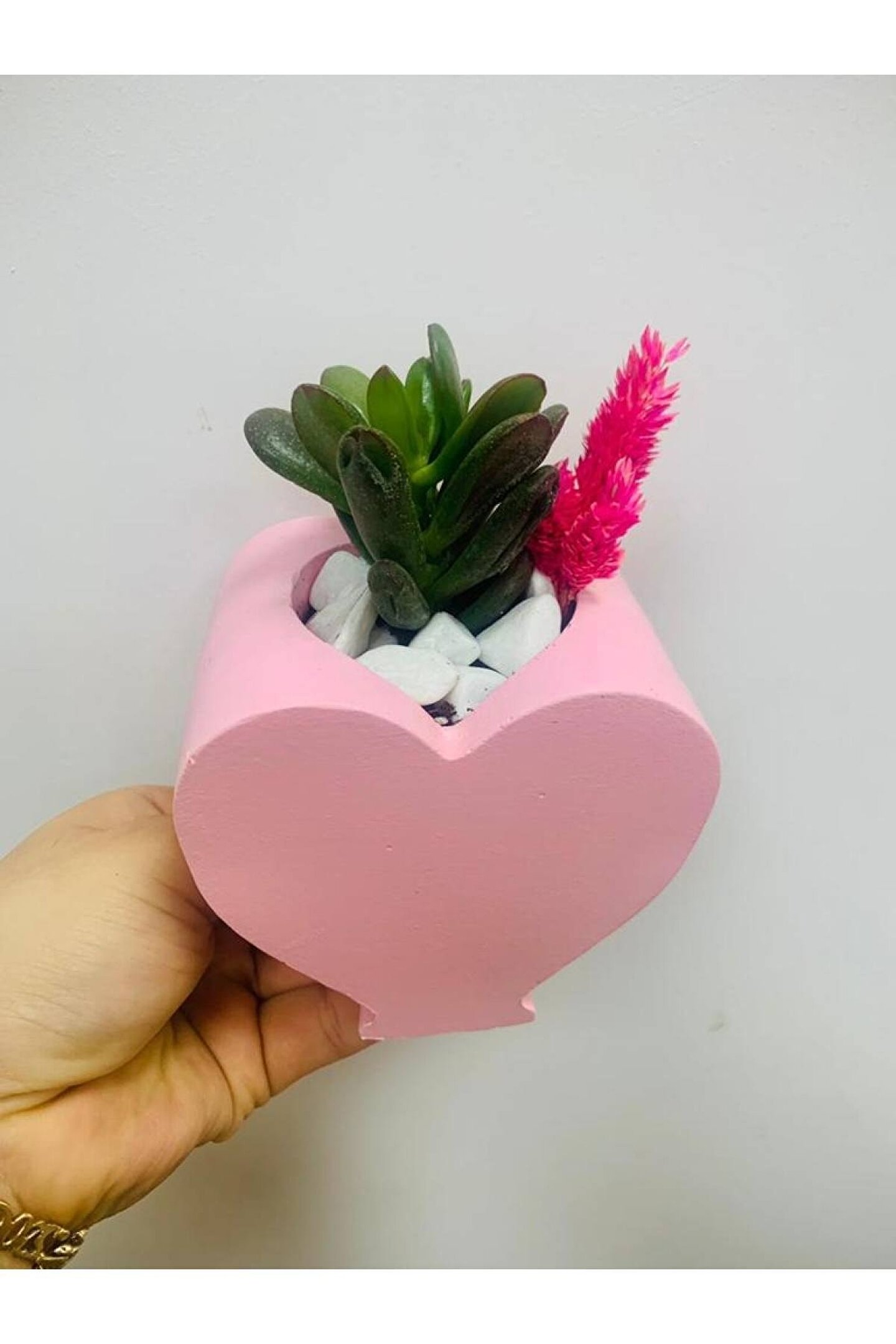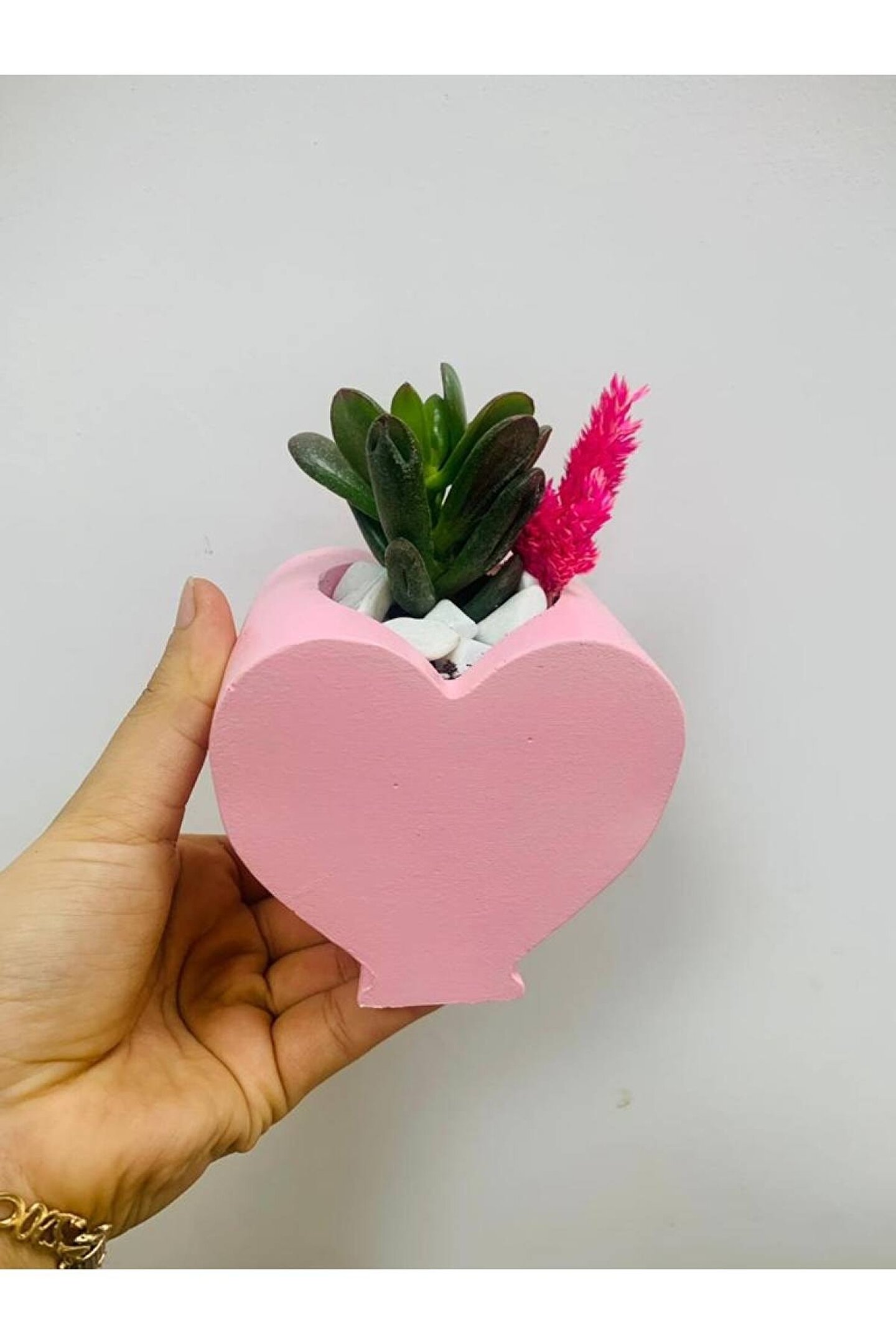 15 CM BOYUNDA 10 CM ÇAPINDA KALP SAKSIDA EKİLİ SUKULENT