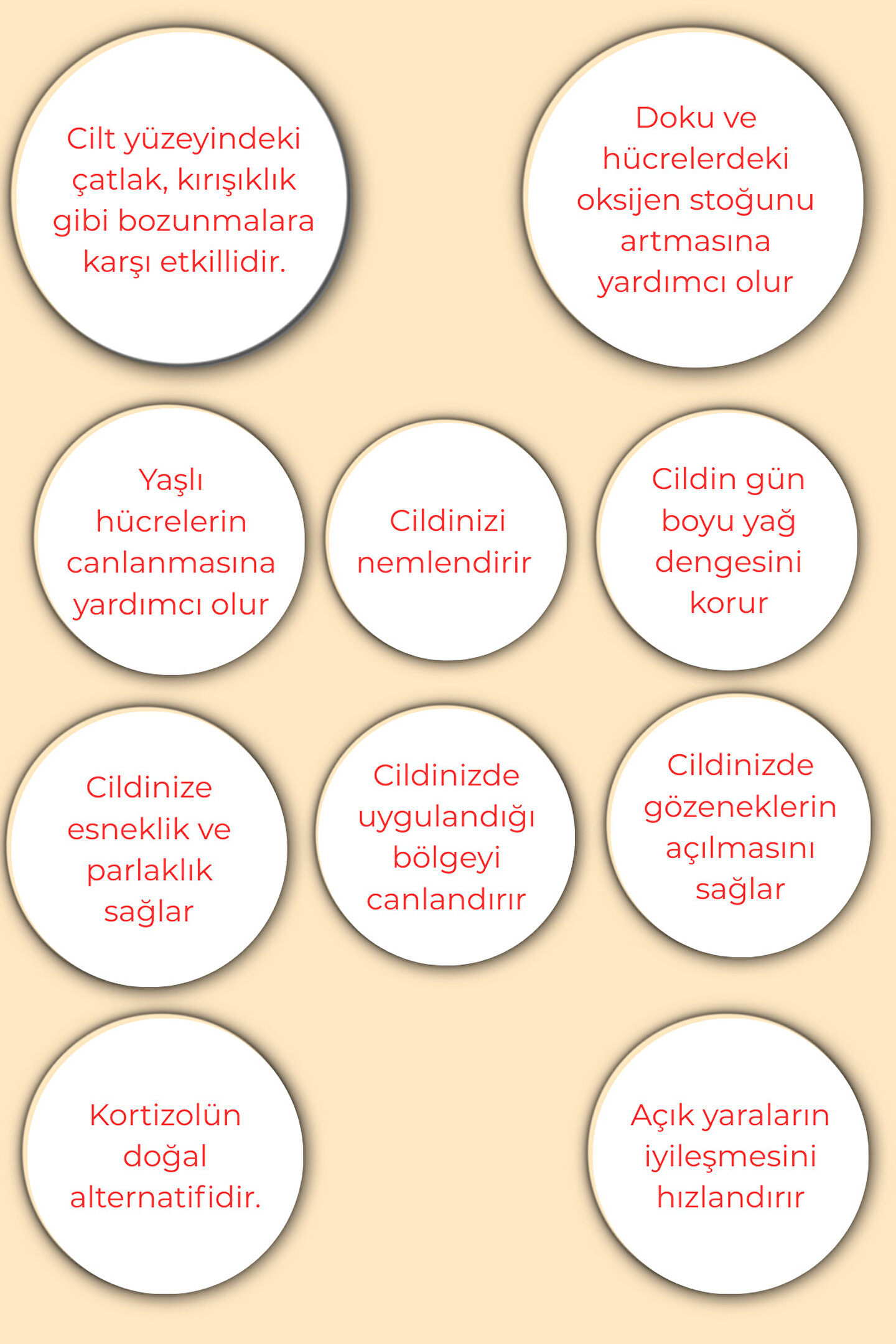 Oksijen ile zenginleştirilmiş zeytin yağından elde edilen ozon jeli cildin gözeneklerinin açılmasını ve antioksidan özelliği ile cildin temizlenmesini sağlayabilir. Cilt bakımı için ideal bir doğal üründür. %100 doğaldır. İçeriğinde Ozonized Olive Oil / Oksijenle Zenginleştirilmiş Zeytinyağı bulunur. Faydaları Tetra ozon içeriği ile doku ve hücrelerdeki oksijen stoğunu arttırabilir, yaşlı hücreleri canlandırabilir. Cilt yüzeyindeki çatlak, kırışıklık gibi bozunmalara karşı etkilli bir çözüm olabilir. Uygulandığı bölgeyi canlandırması, gözeneklerin açılmasını sağlayabilir. Cildinizi nemlendirmesi ve gün boyu yağ dengesini koruyabilir. Cildinize esneklik ve parlaklık sağlayabilir. Herhangi bir katkı maddesi içermez.Natural sabunla veya ozonlu sabun ile cildinizi temizleyiniz. Temizlenmiş ve kuru cildinize jeli dairesel hareketlerle masaj yaparak uygulayınız.