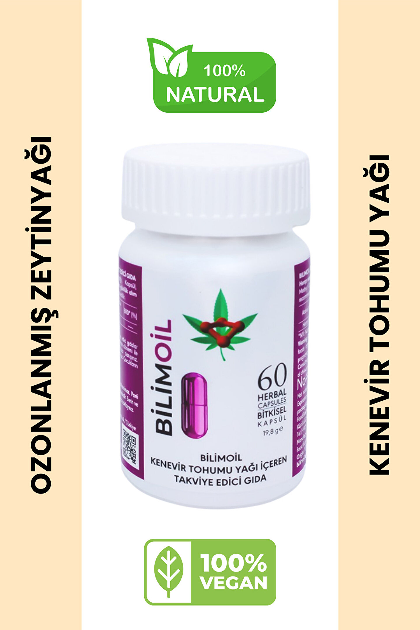 Yüksek enerjili oksijen ile zenginleştirilmiş, kenevir tohum yağı ve zeytinyağı içeren takviye edici gıda, kenevir tohumu yağı ve %100 ozonla zenginleştirilmiş soğuk sıkım zeytinyağından üretilmiştir.; İçeriğinde kimyasal ve koruyucu içermez.; Günlük kullanım miktarı 280 mg (2 adet)’dır.; Ürün düzenli kullanımda; vücudun antioksidan üretimini desteklemeye, metabolizmanın düzenlenmesine, bağışıklık sisteminin desteklenmesine, kanın oksijen taşıma kapasitesinin artmasına yardımcı olabilir.; Gıda takviyesinin kapsüllerinin üretilmesinde mor havuçtan elde edilen kapsüller kullanılmıştır.; Tamamen doğaldır.; Kullanım talimatlarına uygun olarak tavsiye edilen günlük porsiyonu aşmamak önemlidir; takviye edici gıdaların normal beslenmenin yerine geçemeyeceği unutulmamalıdır.; Hamilelik, emzirme dönemi veya hastalık durumlarında doktor tavsiyesi alınması gerekmektedir.; Ürünün saklanması için soğuk zincir koşullarında 4-20°C arası sıcaklıkta muhafaza edilmesi tavsiye edilir.; Çocukların ulaşamayacağı yerlerde saklanmalıdır.; Ürün 3 adet olarak gönderilecektir.