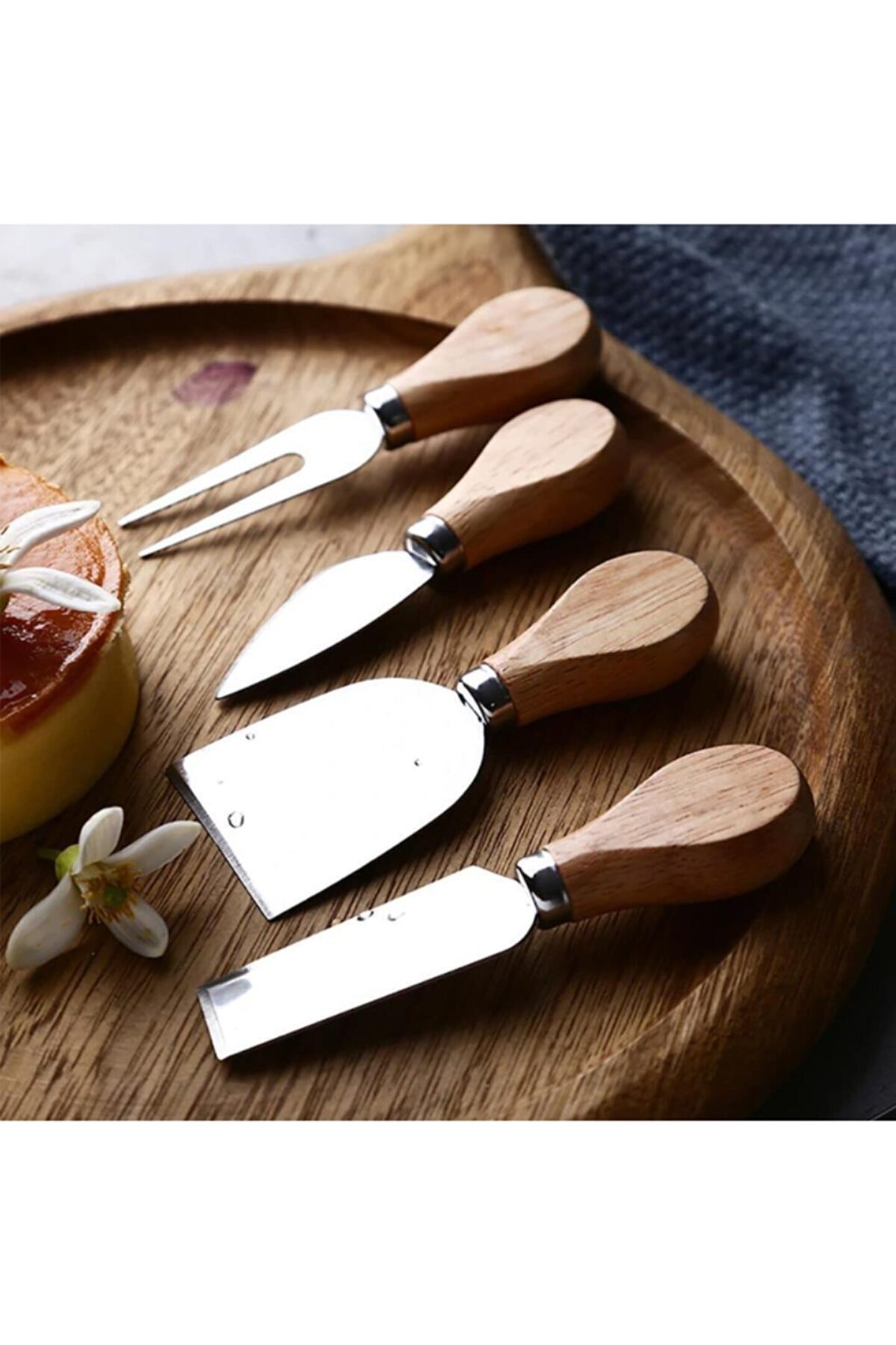 Ahşap Saplı Paslanmaz Çelik Peynir Bıçakları Servis Seti 4 Parça ; 4 Parça Peynir Bıçak Seti peynir sunumlarınıza şıklık katacak. ; Yumuşak ve sert peynirler için ayrı ayrı bambu saplı bıçaklar, spatula ve çataldan oluşan set sayesinde tüm peynirlerinizi aromasını bozmadan, en leziz haliyle servis edebileceksiniz. ; Ürün Ölçüleri ; En: 5 cm ; Boy: 12 cm ; Yükseklik: 2 cm ;