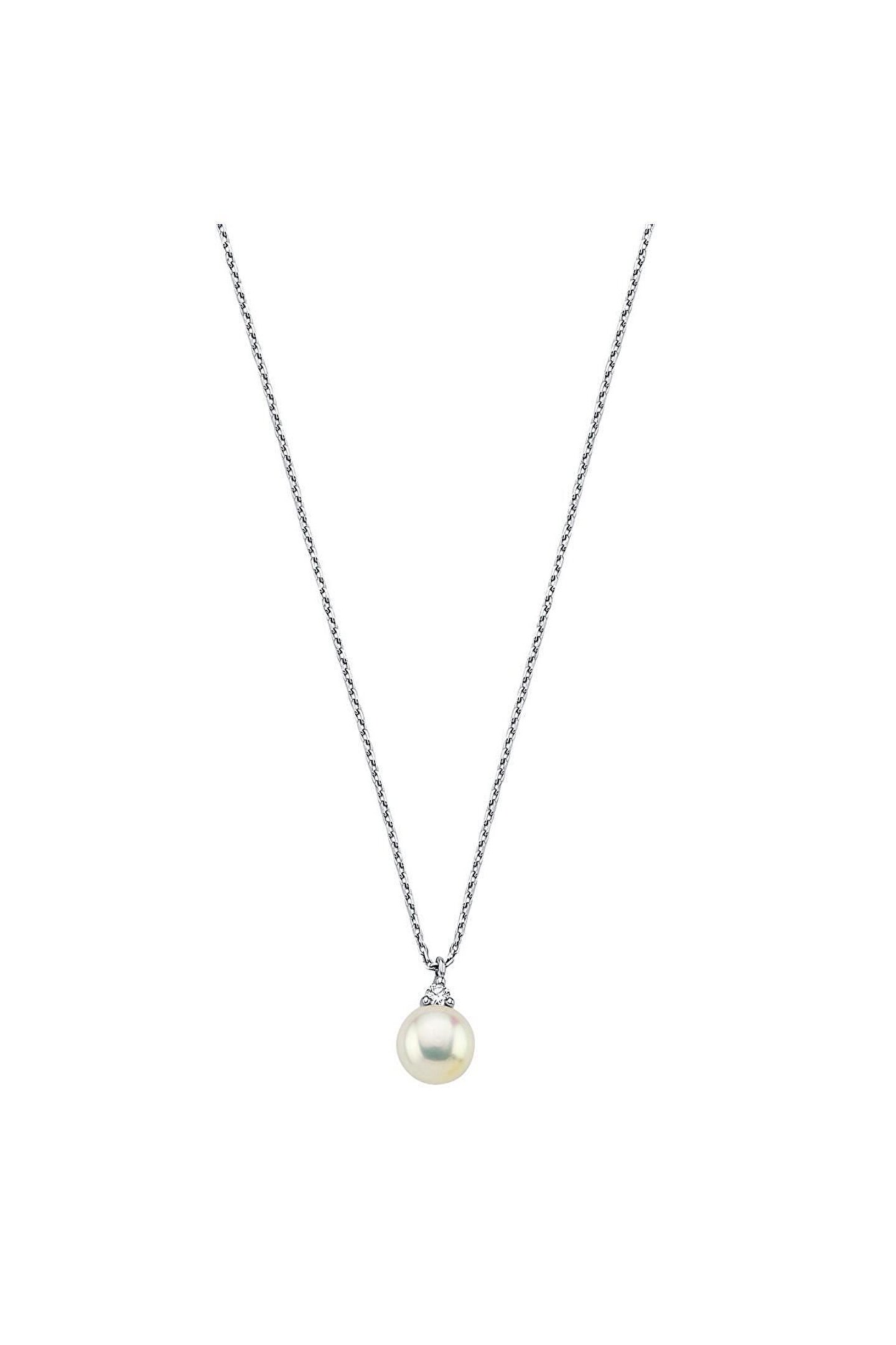 14 Ayar Altın 5 mm Doğal İnci 0,04 Ct Pırlantalı Kolye