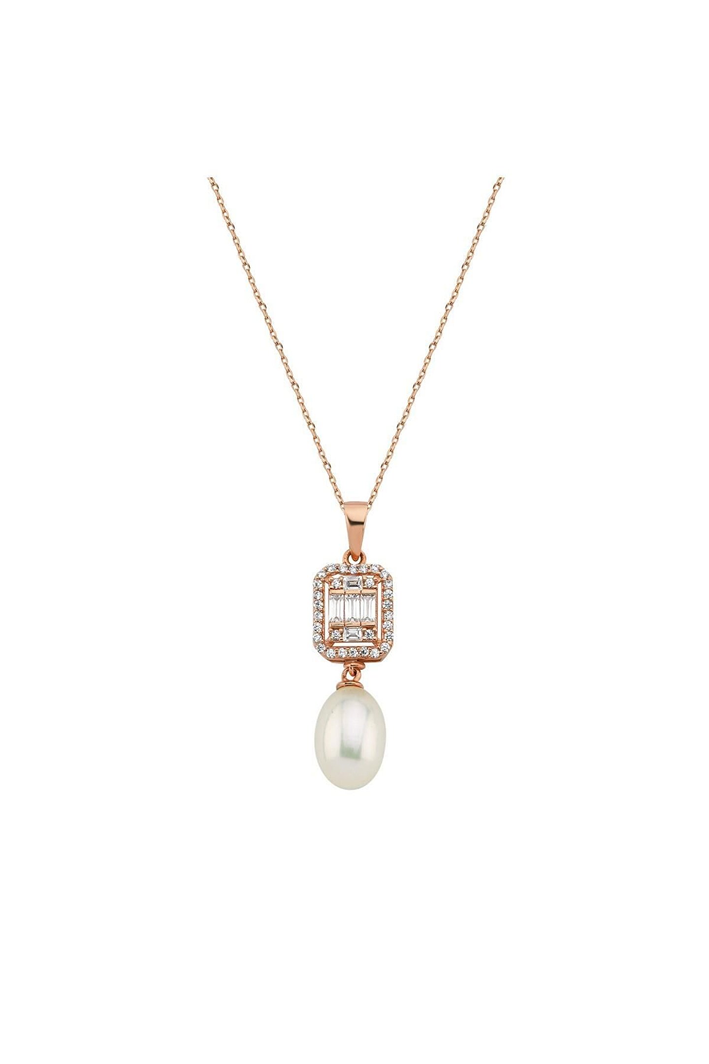 14 Ayar Altın 8 mm Baget Taş Doğal İncili Sallantı Kolye