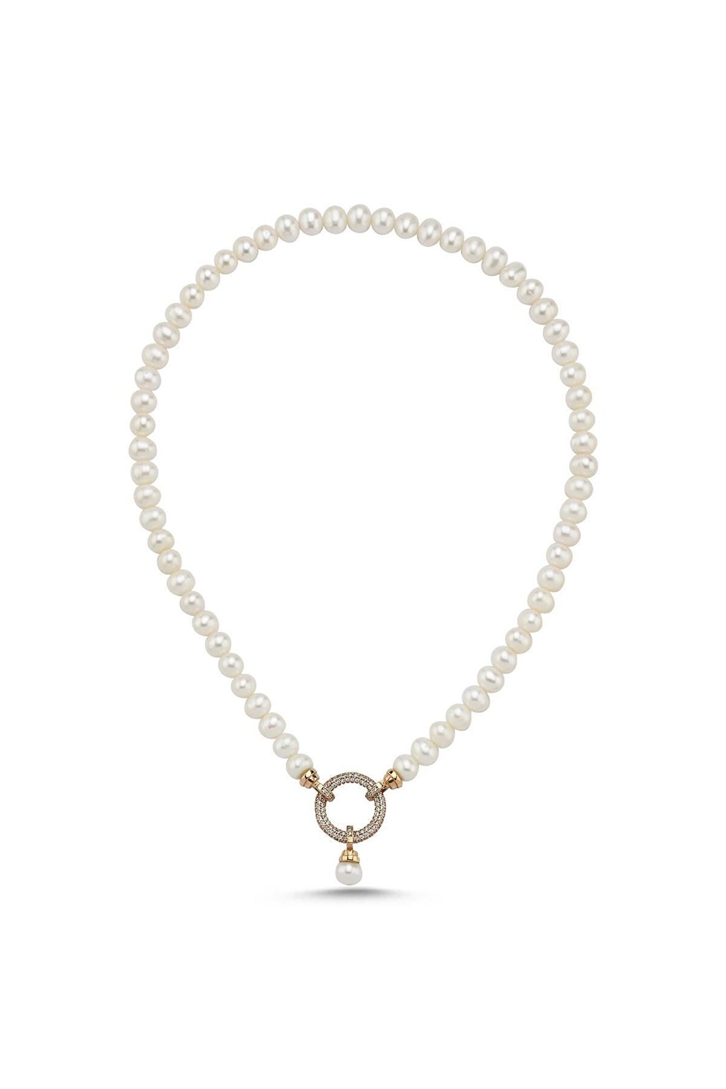 14 Ayar Altın 8 Mm Halka Kilitli Doğal Inci Kolye