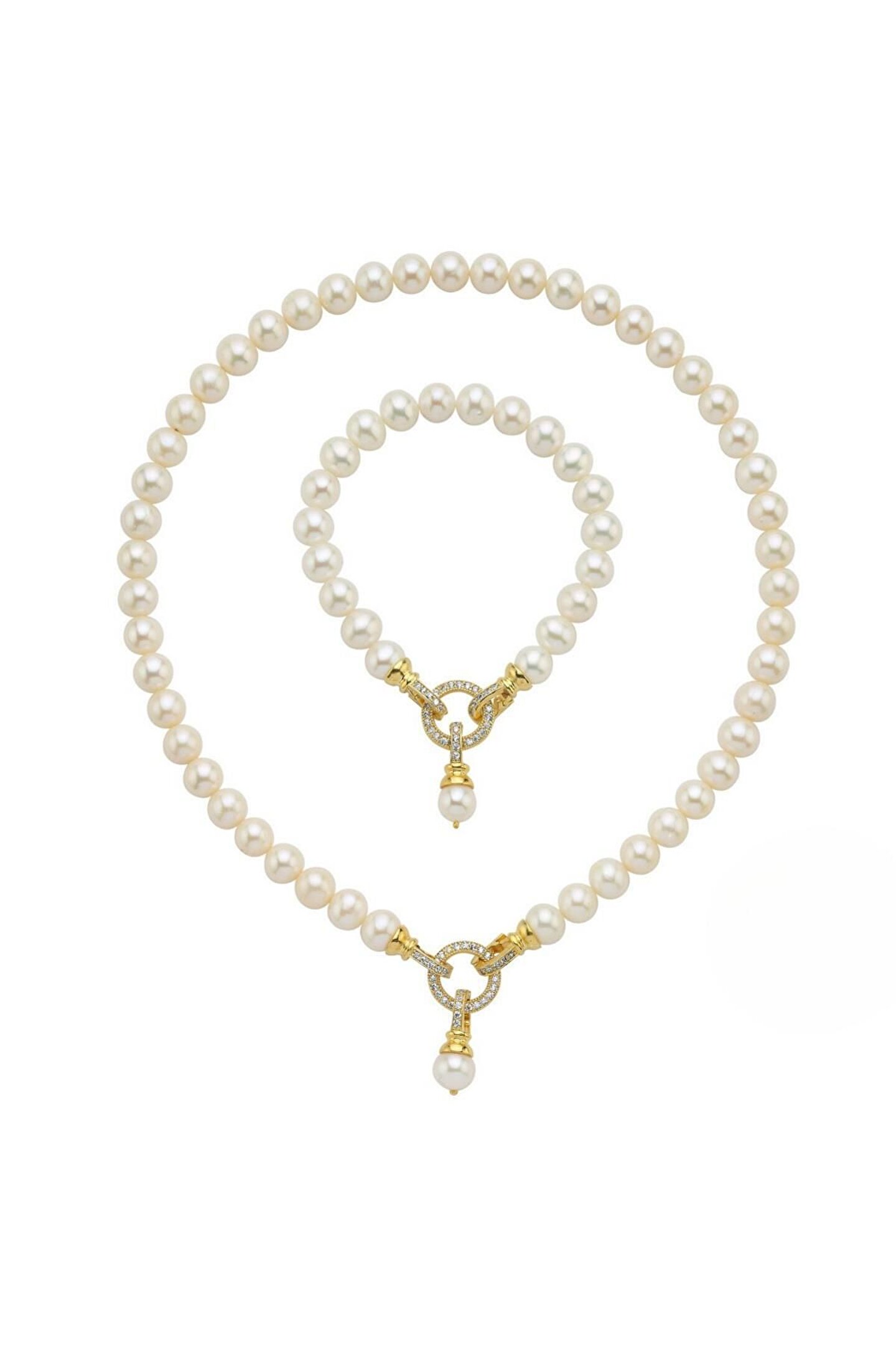 925 Ayar Gümüş 8 Mm Halka Kilitli Doğal Inci Kolye Bileklik Ikili Set