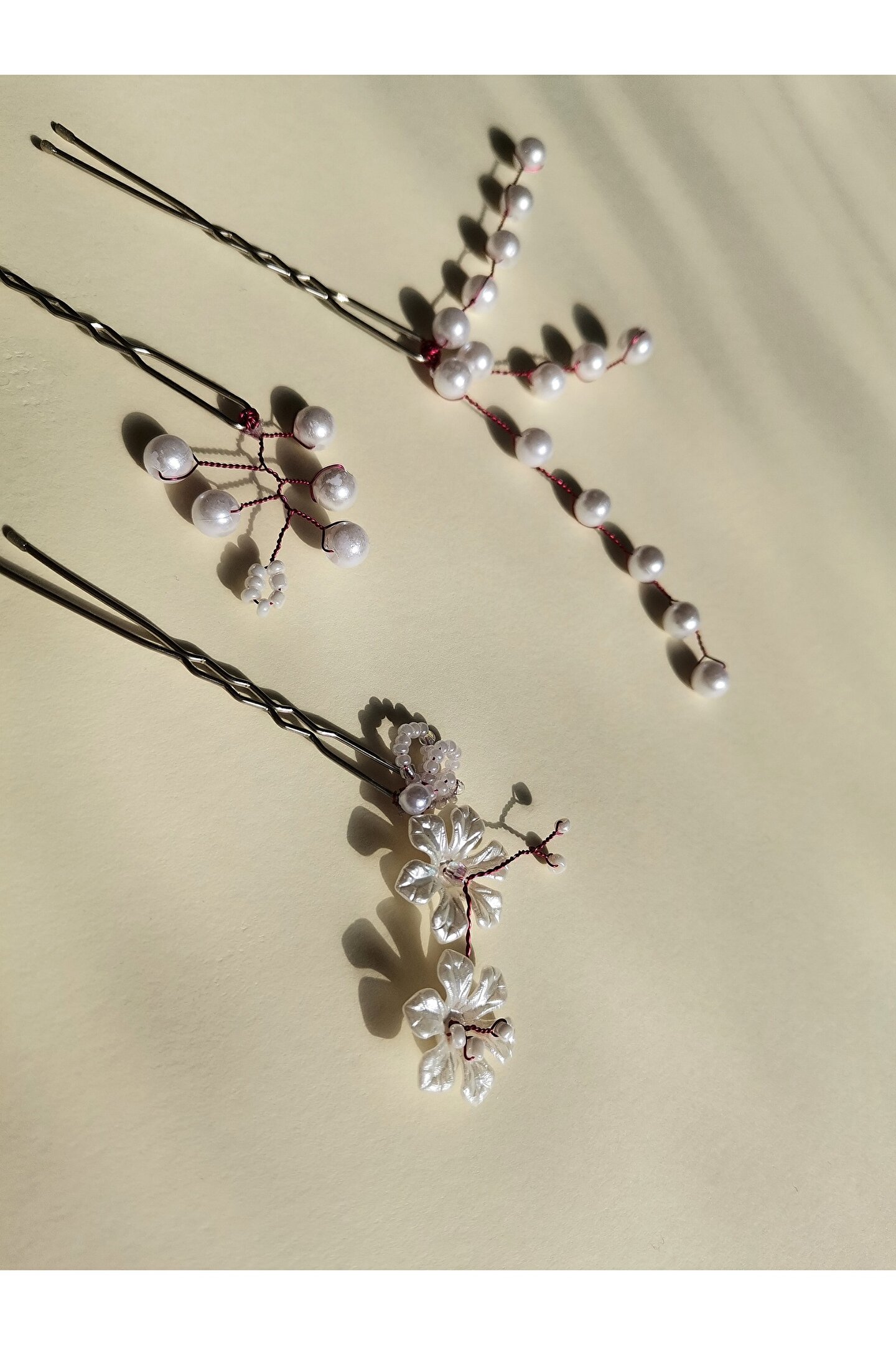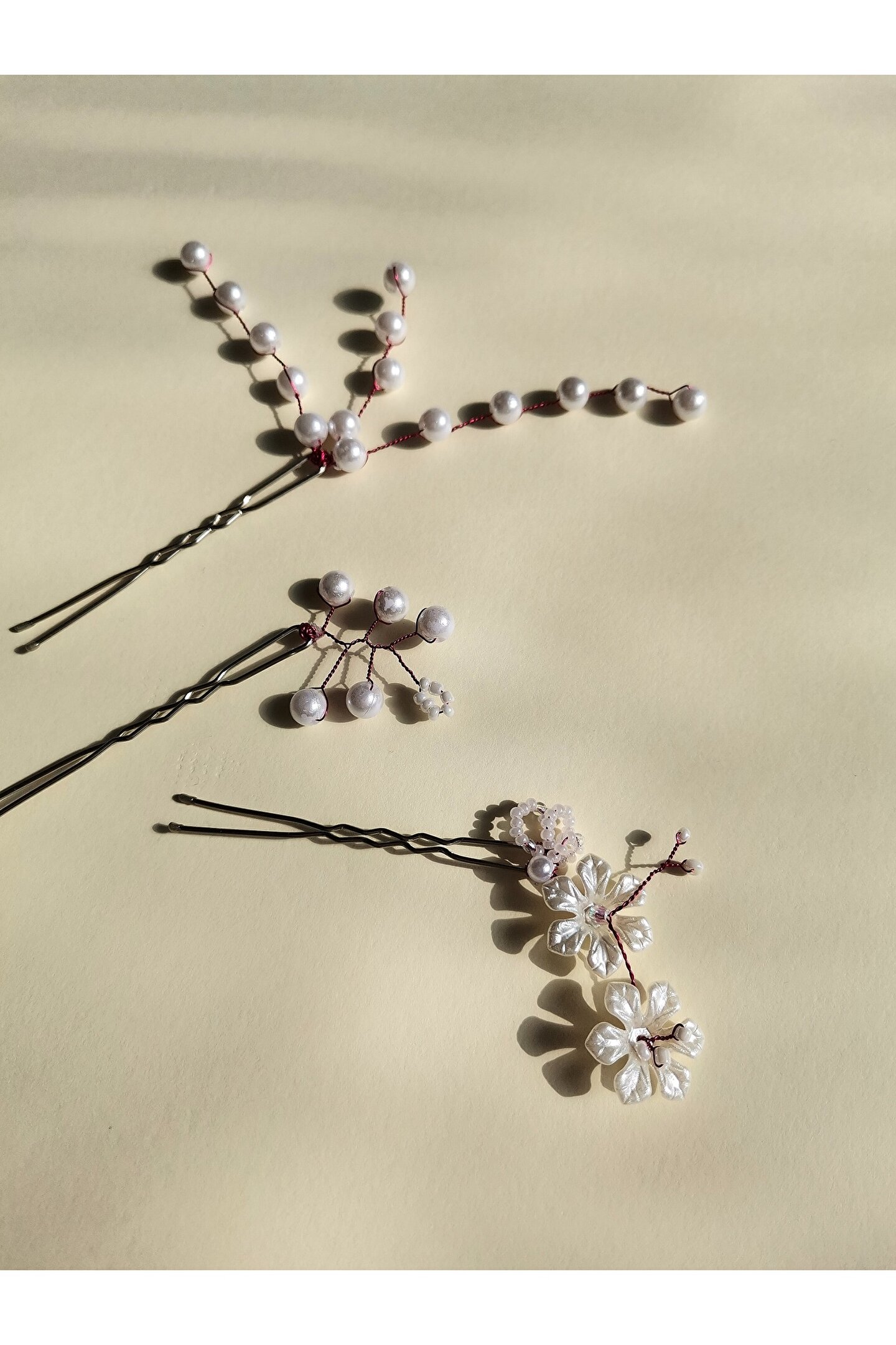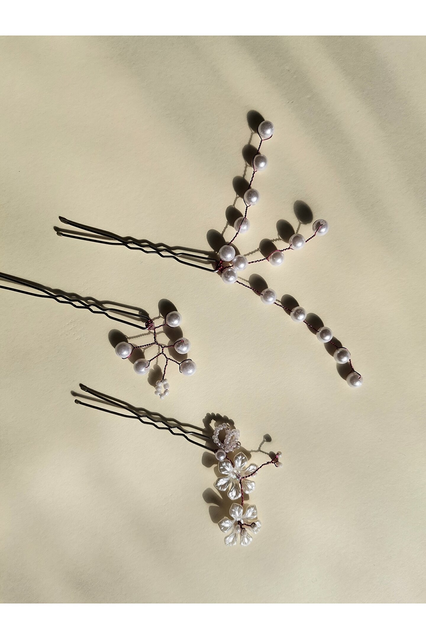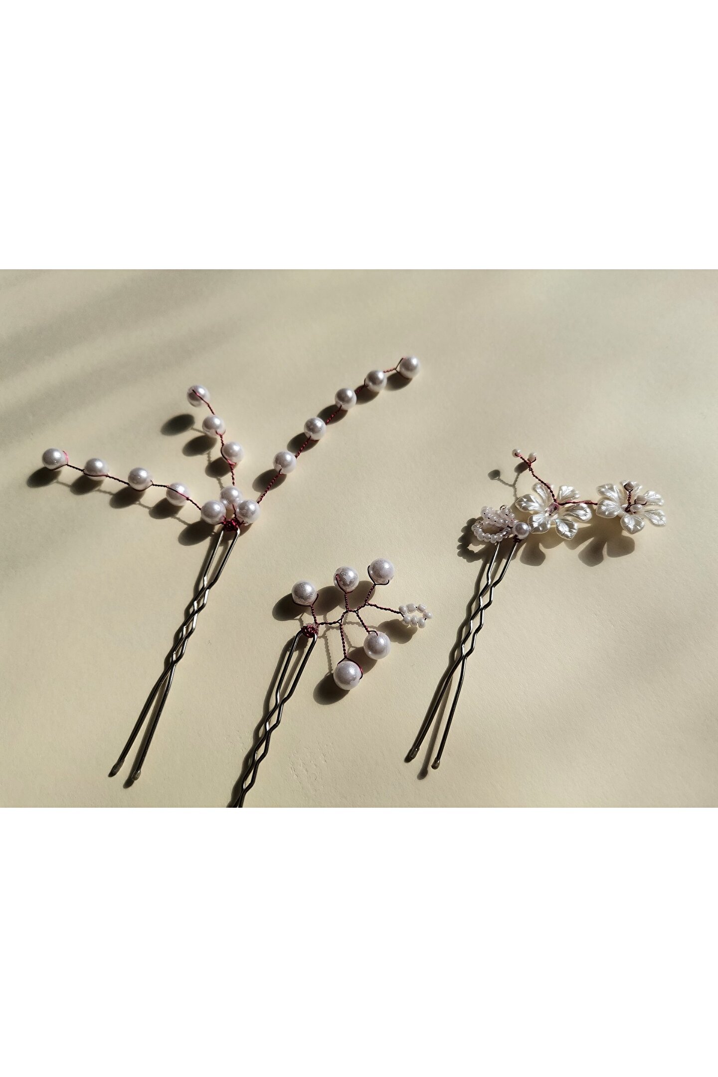 Bivalvia Accessories Beyaz İnci Boncuklu Firkete Toka Seti