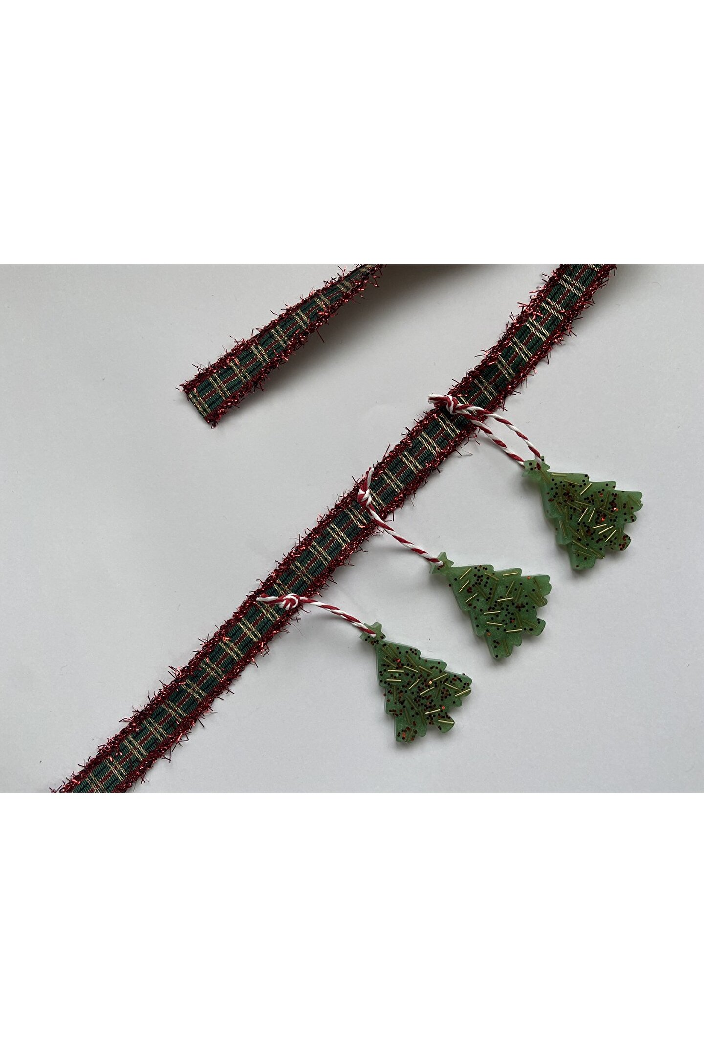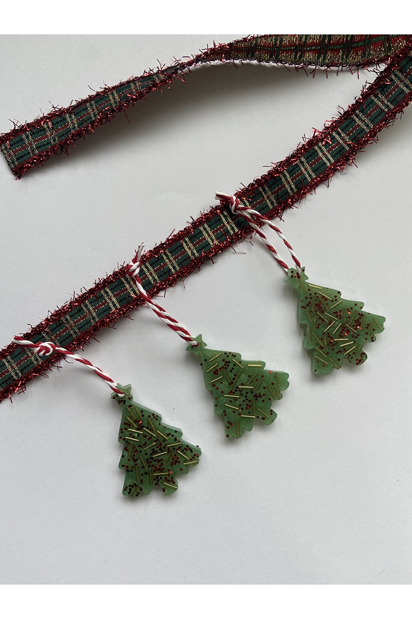 Çam ağacı formunda hazırlanan el emeği epoksi yılbaşı ağacı süsü.