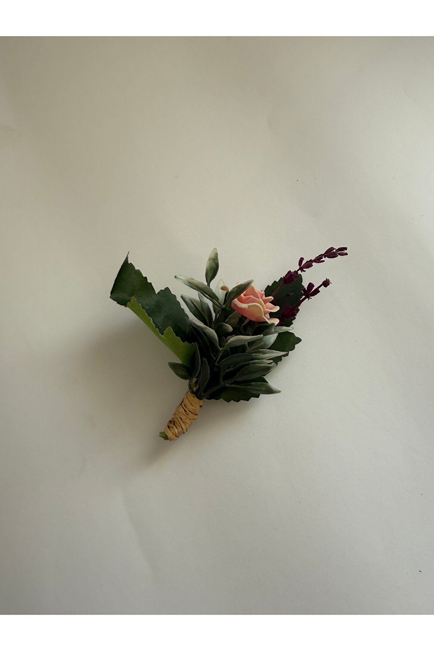 İthal kuru çiçekler ve yapay çiçekler ile hazırlanan özel tasarım damat yaka çiçeği