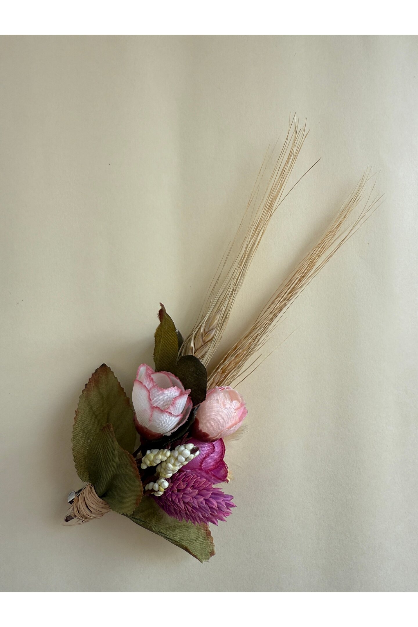 İthal kuru çiçekler ve yapay çiçekler ile hazırlanan özel tasarım damat yaka çiçeği