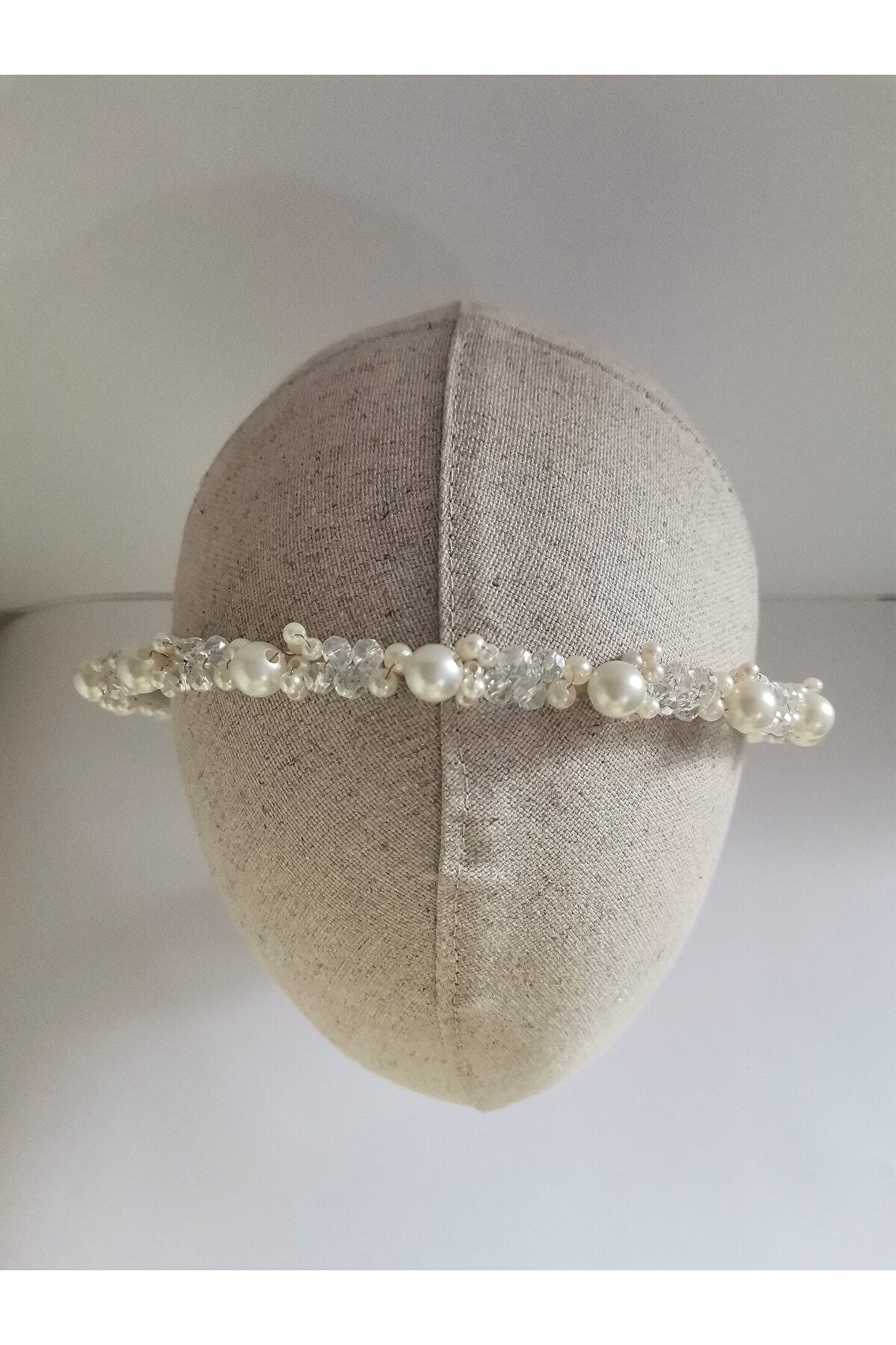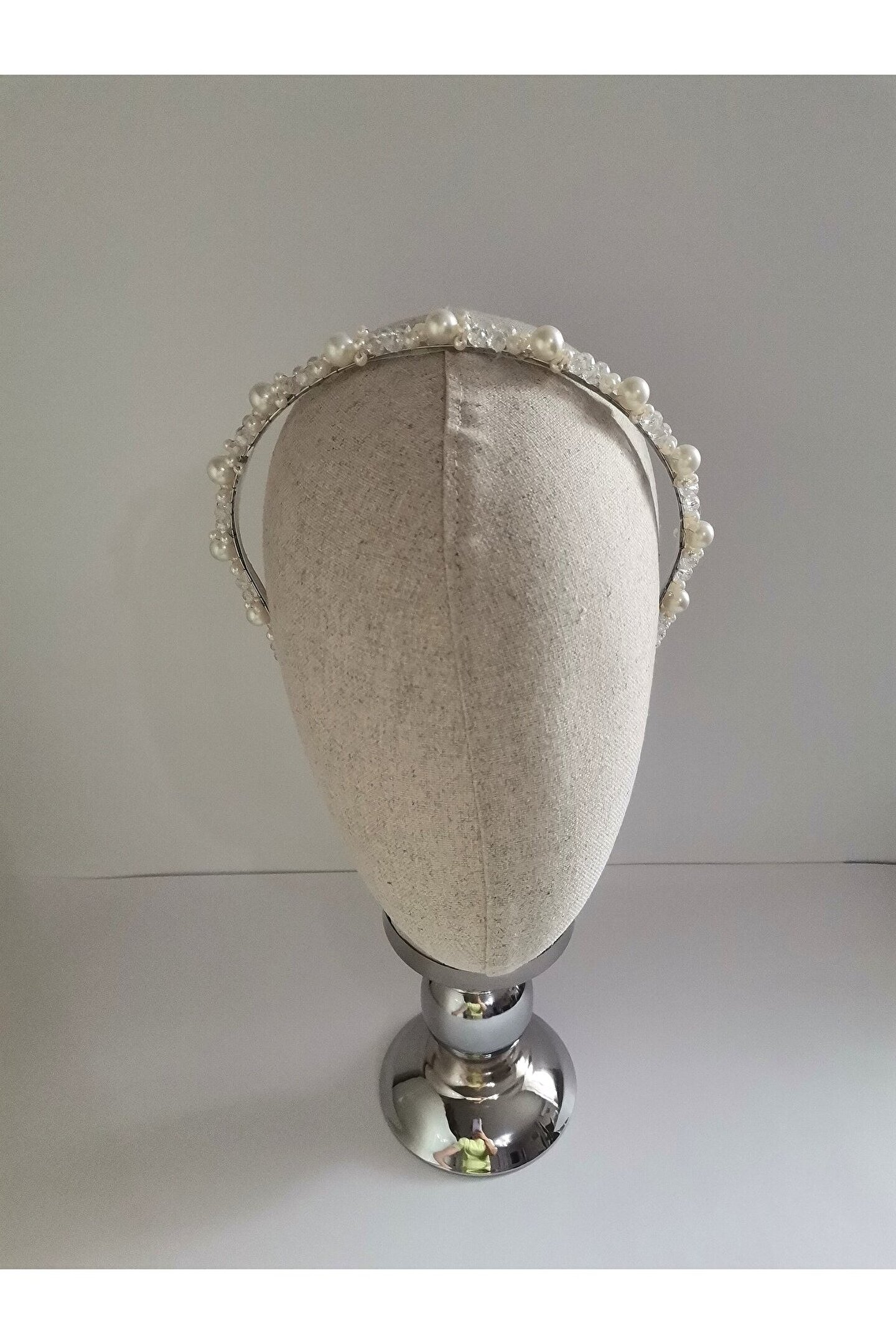 Büyük inci boncuklar, kum boncuklar ve parlak kristal boncuklarla özenle hazırlanmış bu özel tasarım taç, zarif ve dikkat çekici bir aksesuar olarak her ortamda fark yaratır.; El yapımı bu taç, incilerin sofistike ışıltısı ve kristal boncukların parlaklığıyla harmanlanarak hem klasik hem de modern tarzlara uyum sağlar.; Düğün, nişan, özel davetler gibi unutulmaz anlarınızda görünümünüze zarafet katarken, günlük kullanımlar için de ideal bir tercih olabilir.; Her detayı titizlikle işlenmiş olan bu taç, stilinizi tamamlayan şık bir dokunuş sunuyor.