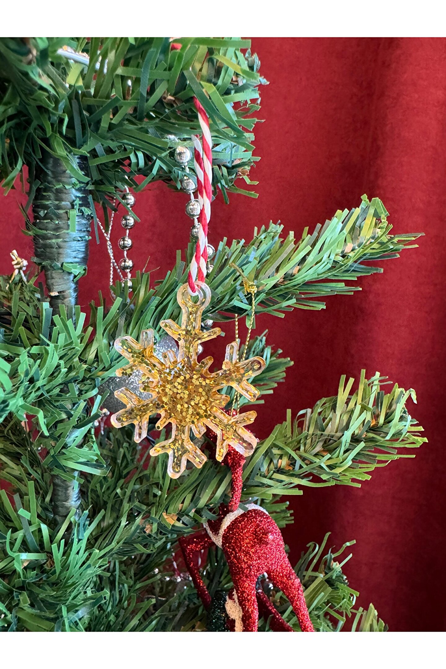 Kar tanesi formunda hazırlanan özel tasarım el emeği epoksi yılbaşı ağacı süsü.; Paket içeriği 3 adettir.