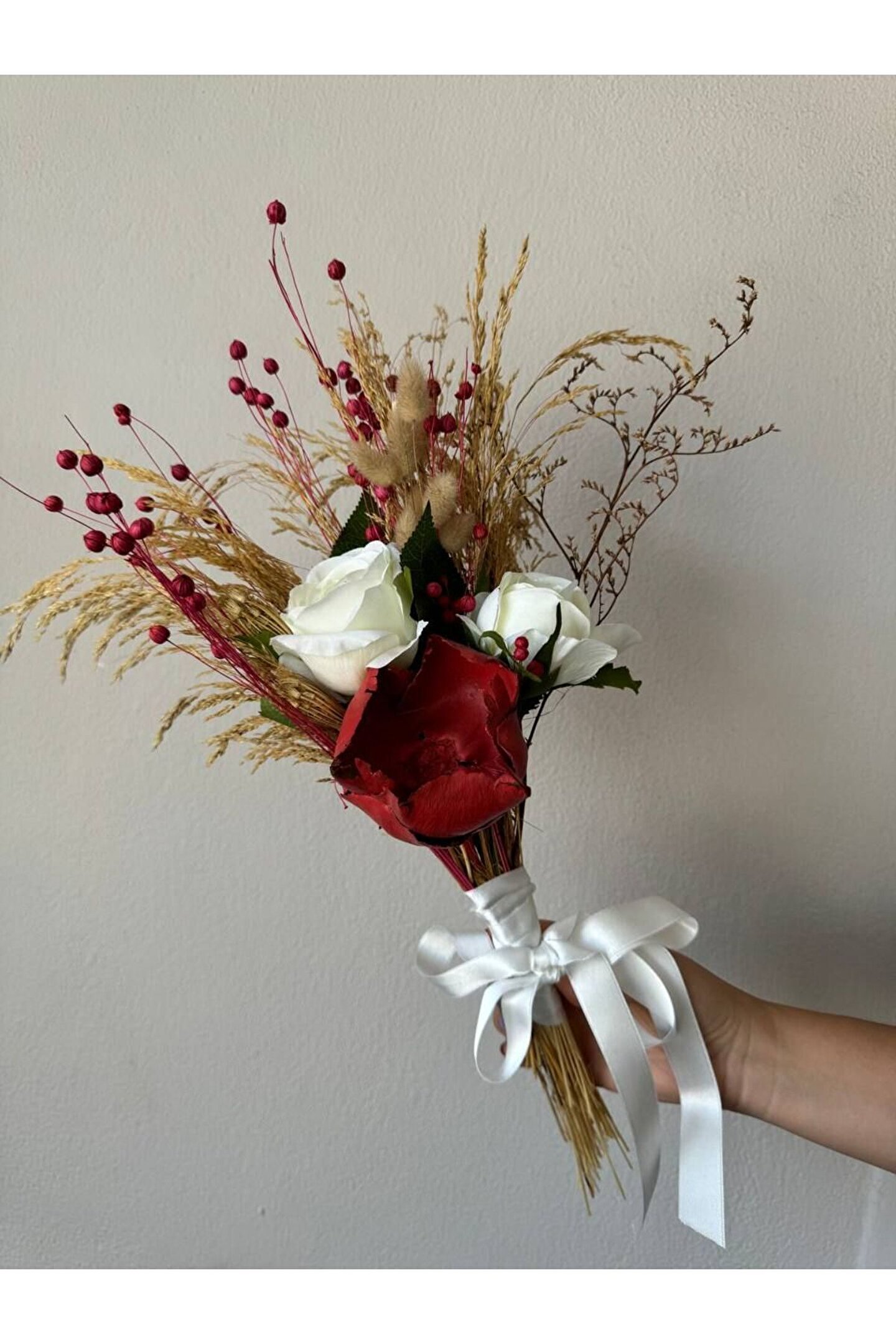 Kuru çiçeklerden oluşan buket, taze ve canlı görünümüyle dikkat çeker; Uzun ömürlü yapısı sayesinde düğün, nişan gibi özel günlerde dekorasyonunuzu tamamlar; Kolayca kurutulmuş ve muhafaza edilmiş çiçekler, uzun süreli kullanım için idealdir; Kuru çiçeklerin dayanıklılığı, buketin estetik görünümünü korumasına yardımcı olur; Kuru çiçeklerin doğal dokusu ve renkleri, mekanınıza sıcak ve samimi bir atmosfer katar;